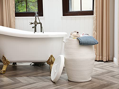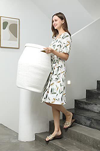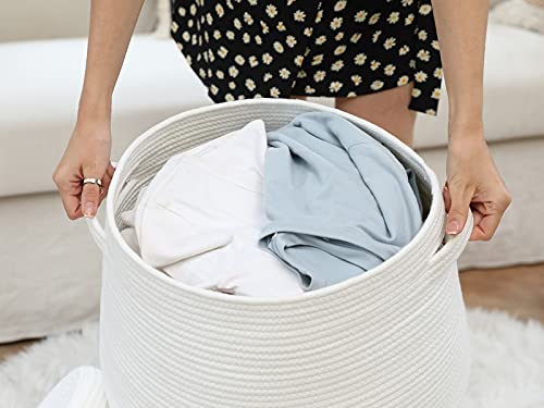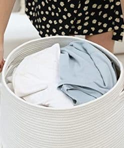 3. TAMAÑO ESPACIOSO: cesta de cuerda de algodón extra grande de 24 pulgadas (altura) x 18 pulgadas (ancho). Esta gran cesta de almacenamiento puede contener más ropa, toallas, mantas, almohadas, ropa de cama y objetos grandes. Perfecta para cesto de mantas o cesto de ropa. Pesa 6 libras, tiene más algodón que otras cestas llamadas extra grandes.