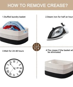 5. Cesta Grande Lavable: Esta cesta grande se puede lavar a mano o a máquina con detergente suave. Si se lava a máquina, por favor póngalas en una bolsa de lavandería. NOTA: Estas cestas de cuerda de algodón están dobladas al enviarse, pero volverán a su forma elegante rápidamente si las llena con algunas toallas o ropa, y planchar es una gran idea para quitar las arrugas.