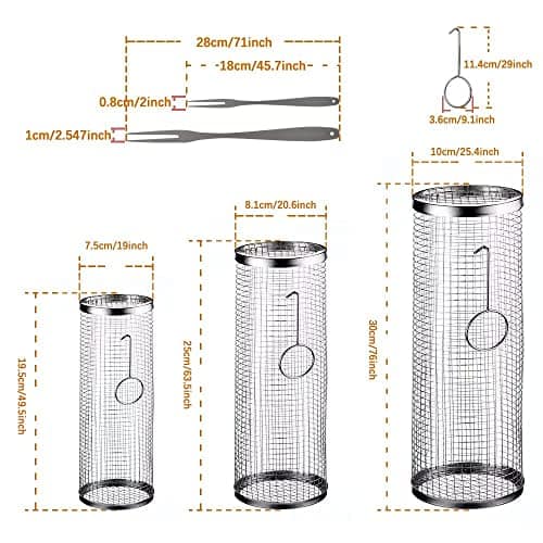 Cesta de Barbecue de Red de Rollo para Parrilla es un cilindro de malla de alambre de acero inoxidable que te permite asar a la parrilla una amplia variedad de alimentos que normalmente no serían posibles de cocinar en la parrilla. Desde verduras como espárragos, judías verdes, espinacas y coles de Bruselas, hasta postres como duraznos y Nutella, esta cesta de parrilla rodante te permite disfrutar de una variedad de sabores a la parrilla. Además, puedes asar varios alimentos simultáneamente para mezclar sabores y ahorrar tiempo. La cesta de parrilla rodante es apta para lavavajillas, lo que facilita la limpieza después de su uso. Puedes cargar la cesta con alimentos y guardarla en el refrigerador hasta que estés listo para usarla, lo que la hace perfecta para picnics, tailgating y acampadas. Con nuestro mejor servicio al cliente, nos aseguraremos de que recibas un producto de calidad y te proporcionaremos un servicio de reemplazo gratuito en caso de algún daño.
