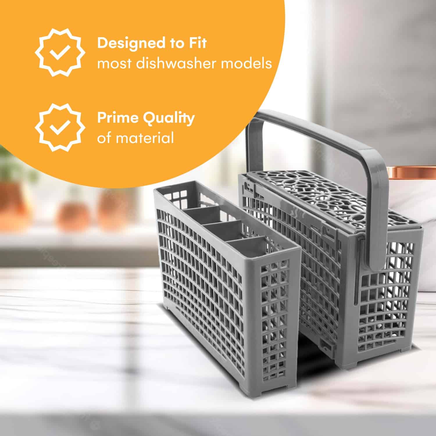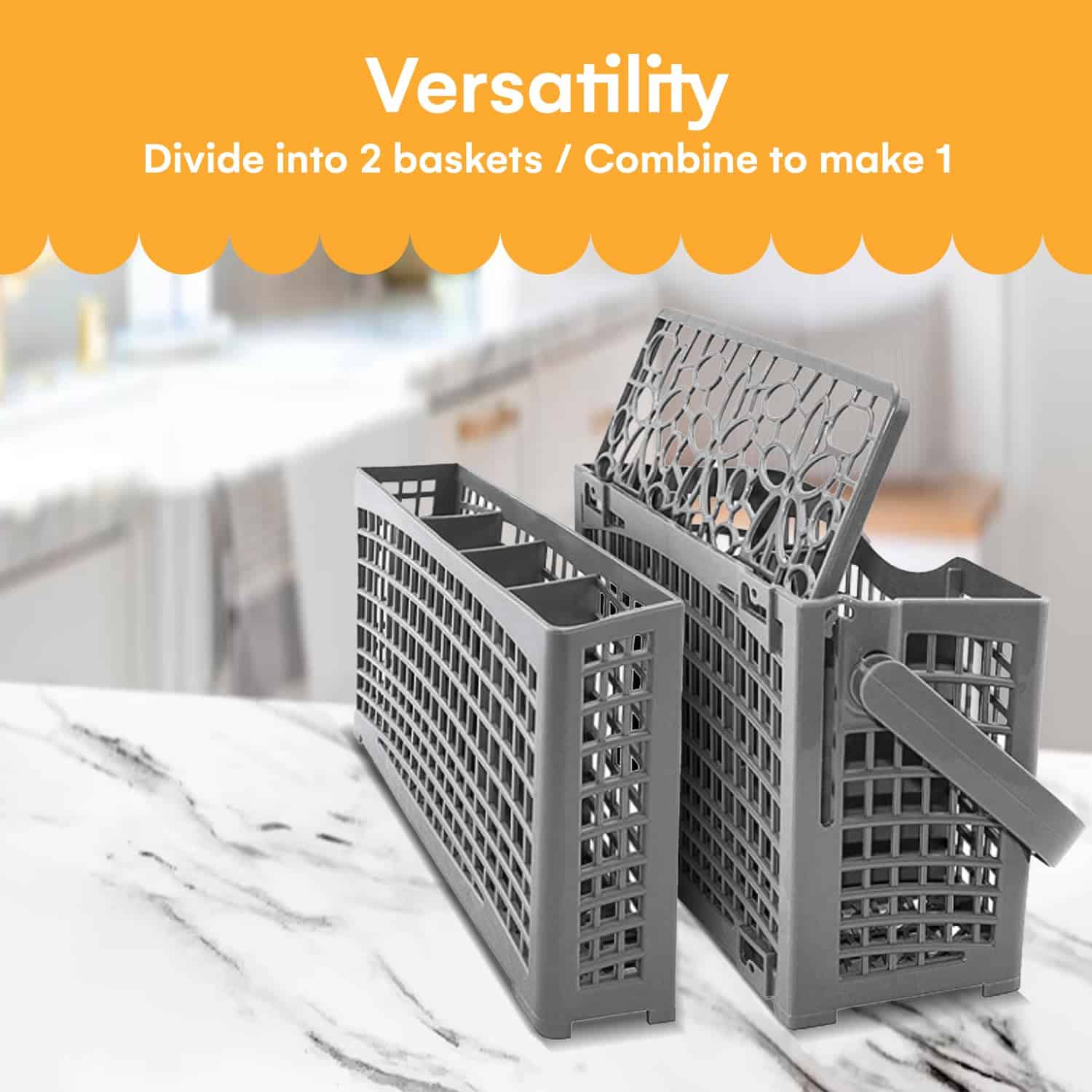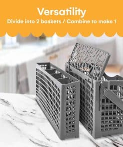 1. Organización versátil: Se divide en dos cestas o se combina en una para un uso adaptable; compatible con la mayoría de los lavaplatos incluyendo Maytag, KitchenAid, Whirlpool, Kenmore, Bosch y Samsung.