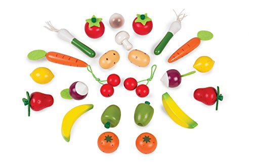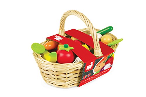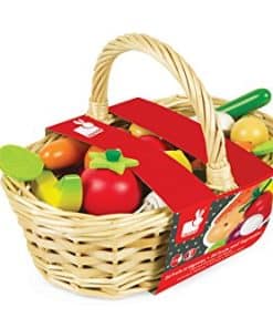 La cesta de frutas y verduras de Janod – 25 piezas te permite jugar a ser tendero. Tu cesta viene cargada con 24 frutas y verduras para que las organices y juegues con ellas. De colores brillantes y diseñadas de forma realista.