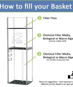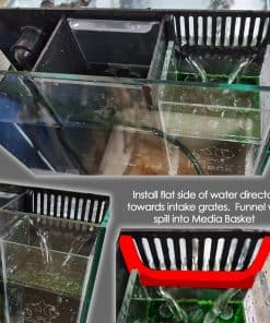 Las Cestas de Medios diseñadas específicamente para acuarios de inTank ayudan a mejorar la filtración y claridad de tu acuario mientras hacen que el mantenimiento sea extremadamente fácil. Lo que antes era una tarea temida de cambiar filtros y sumergirse en el acuario ahora se simplifica utilizando un sistema de diseño de Torre de 4 Lados. La filtración de stock de Fluval es muy sucia, un sistema de filtro de inTank resolverá los problemas de flujo con el diseño de stock y mantendrá el acuario por más tiempo. Nueva Versión 2020 – Pared frontal más baja para un flujo mejorado y niveles de agua. Se adapta a Fluval Evo 13.5 en la Cámara Uno (cámara de admisión). NUEVO – INCLUYE Director de Agua y Tapón GRATIS – el director de agua es específico para la versión 2020. Mantiene limpias las cámaras traseras y promueve agua clara. Obliga al agua a pasar a través de los medios de filtración y no solo alrededor de ellos. La cesta de medios tiene cuatro lados con uno siendo una puerta extraíble para cambios de filtro fáciles y rápidos. Cuenta con un diseño de tres estantes con el estante medio siendo extraíble, brindándote opciones de medios definitivas. Orificio para los dedos incorporado para una instalación y extracción fáciles. Mejora el pobre flujo del diseño de baffles ranurados de Fluval, el agua es forzada a través de la cesta. Facilita la filtración. Instala el director de agua con el lado plano mirando hacia las rejillas de admisión. Se adapta a Fluval Evo 13.5. Se adapta a Fluval Evo 52L. 11-1/4″ de Alto, 3-9/16″ de Ancho, 2-3/4″ de Profundidad.