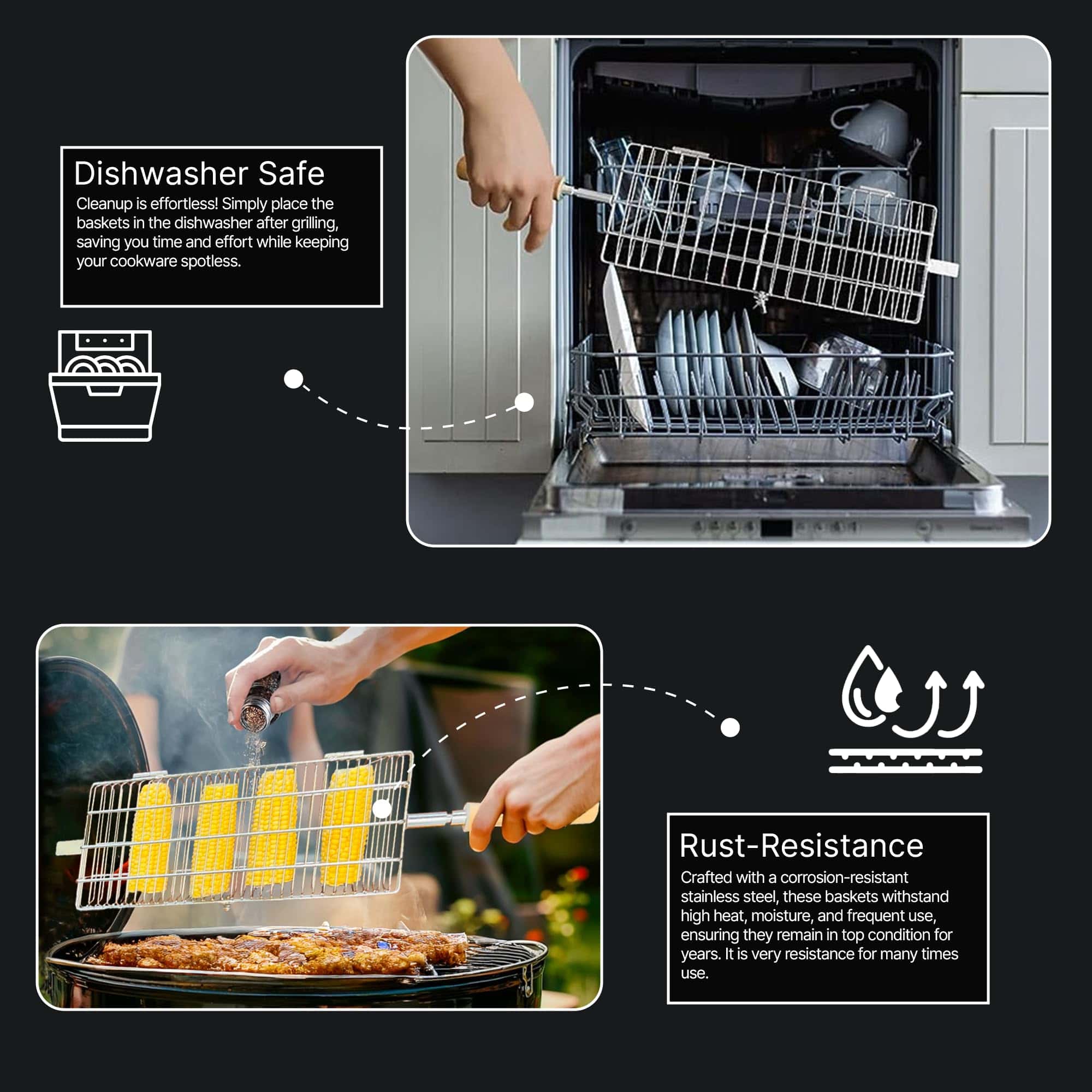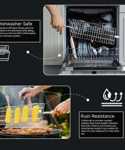 3. FÁCIL DE LIMPIAR La parrilla de cesta está hecha de acero inoxidable de calidad alimentaria 320, es reutilizable y resistente, resistente al óxido y desarrollada para un uso a largo plazo. Apta para lavavajillas. Un diseño moderno hace que esta cesta sea rápida y fácil de limpiar, práctica y accesible.