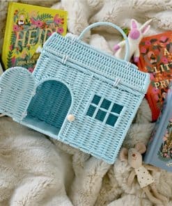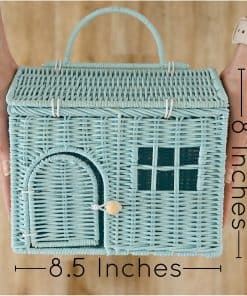 A tu pequeña le encantará jugar con esta hermosa cesta en forma de casa. Puede llevarla como un bolso donde quiera que vaya y llevar consigo algunas de sus muñecas en miniatura favoritas o ratones para jugar. Deja que su imaginación vuele mientras podrá abrir y cerrar la puerta o acceder al centro del bolso a través de la tapa. También es un accesorio adorable para su habitación. Puede servir como una pequeña cesta de almacenamiento y un juguete de hacer creer. Es el toque perfecto para una guardería de bosque o la habitación de una niña bohemia.