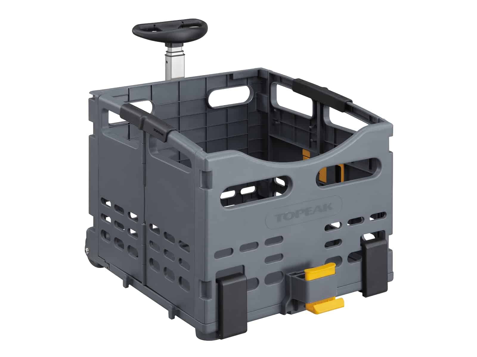 La solución perfecta para compras y recados en la ciudad. TrolleyTote cuenta con un mango telescópico y ruedas de carro para un fácil manejo en el mercado y el marco duradero de gran capacidad es plegable para un fácil almacenamiento. El TrolleyTote es compatible con MTX QuickTrack para un montaje y desmontaje seguro deslizando y haciendo clic en todas las parrillas MTX de Topeak.