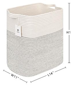 Cestas de almacenamiento Laughbird para ropa: Mantén tu hogar organizado con estas cestas de almacenamiento de cuerda de algodón de alta calidad. Ideales para guardar mantas, juguetes y otros objetos. Con diseño tejido y asas para un fácil transporte. Añade un toque decorativo a tu sala de estar o armario. Dimensiones: L14” x W11” x H14”. ¡Ordena ahora y disfruta de la practicidad y estilo que estas cestas te ofrecen!