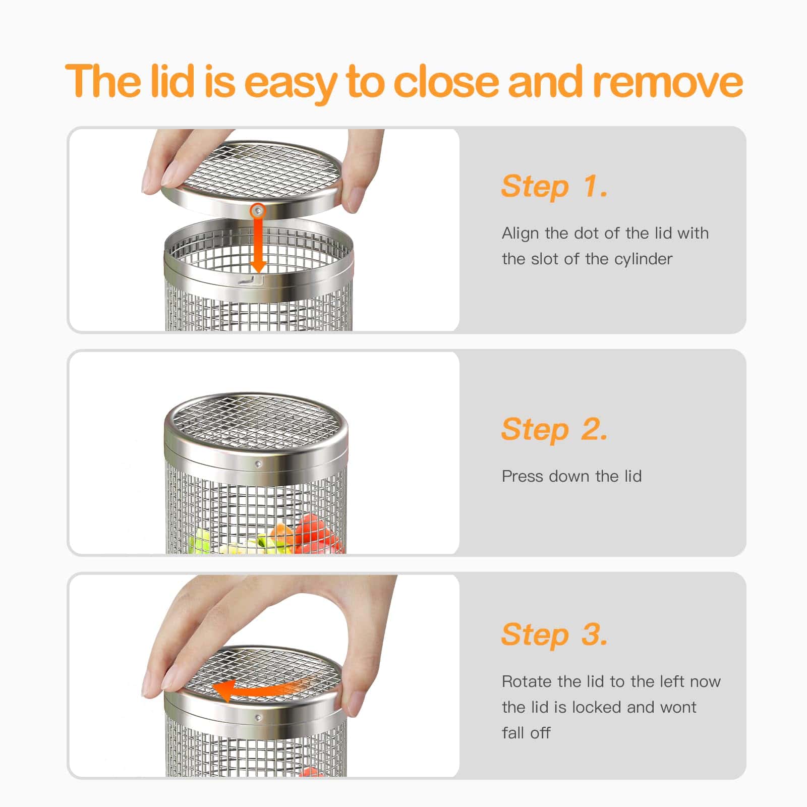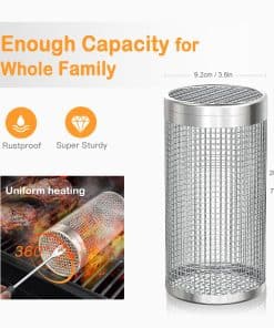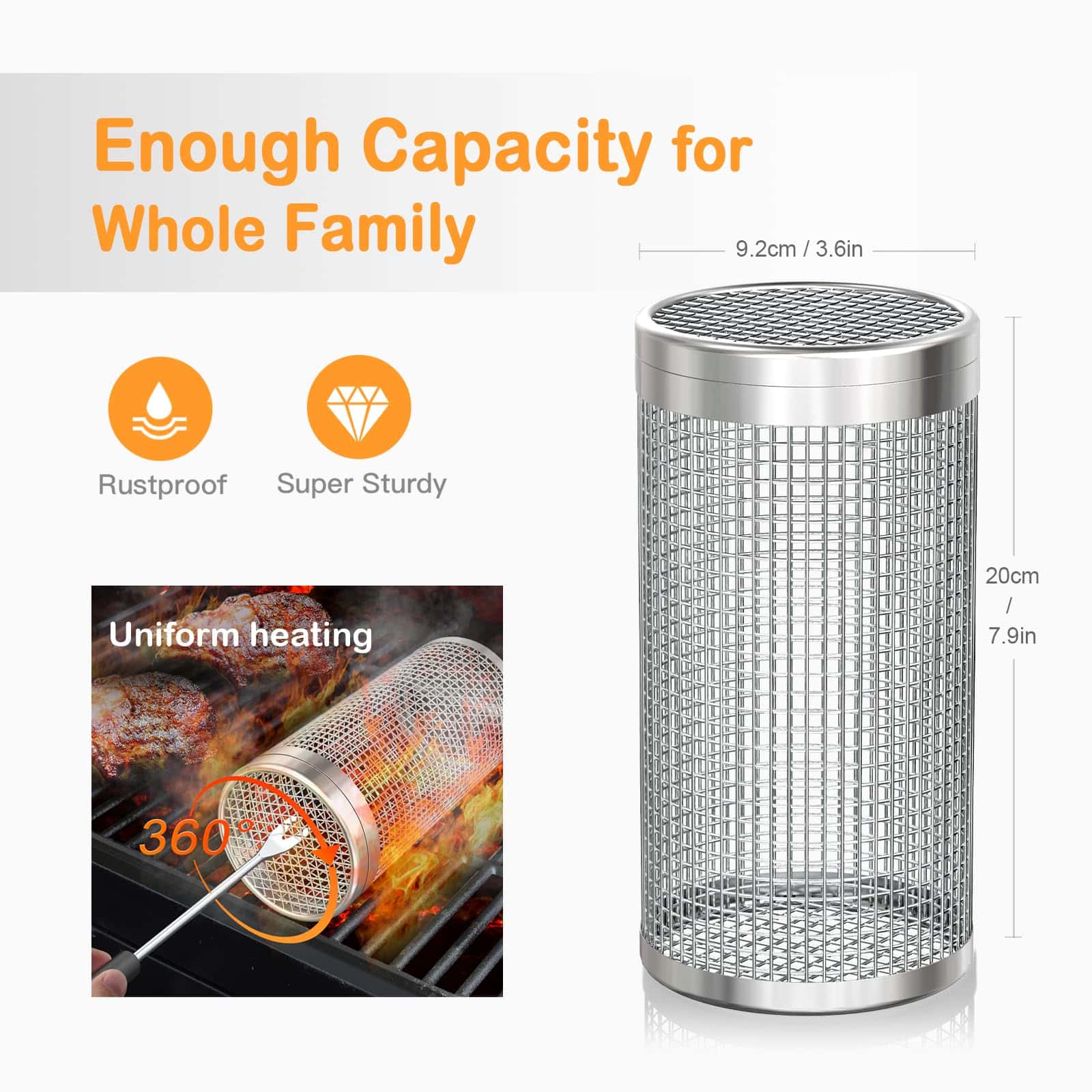 1. Fácil de Usar: La cesta de parrilla giratoria se puede girar fácilmente, asegurando que sus alimentos se cocinen de manera uniforme y eliminando la necesidad de darle la vuelta constantemente.