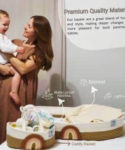 El cesto para cambiar bebés ZEAL’N LIFE viene con un extra cesto para pañales, lo suficientemente grande para mantener los pañales, toallitas y otras necesidades del bebé en perfecto orden y al alcance de la mano. Diseño práctico con asas más largas para facilitar el movimiento del bebé por la casa. Incluye un organizador de pañales removible que permite crear compartimentos en el cesto. La mantita para bebé tiene un diseño único que brinda una sensación ligera y suave para el bebé. La colchoneta de cambio es grande y amplia, ofreciendo estabilidad y espacio extra durante los cambios de pañal. Regalo perfecto para padres primerizos, con una construcción resistente que la hace un regalo versátil para baby shower o revelación de género.