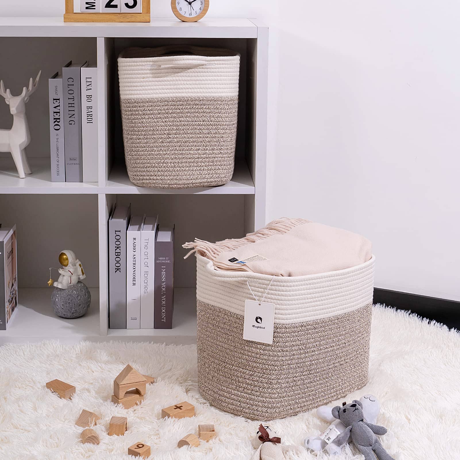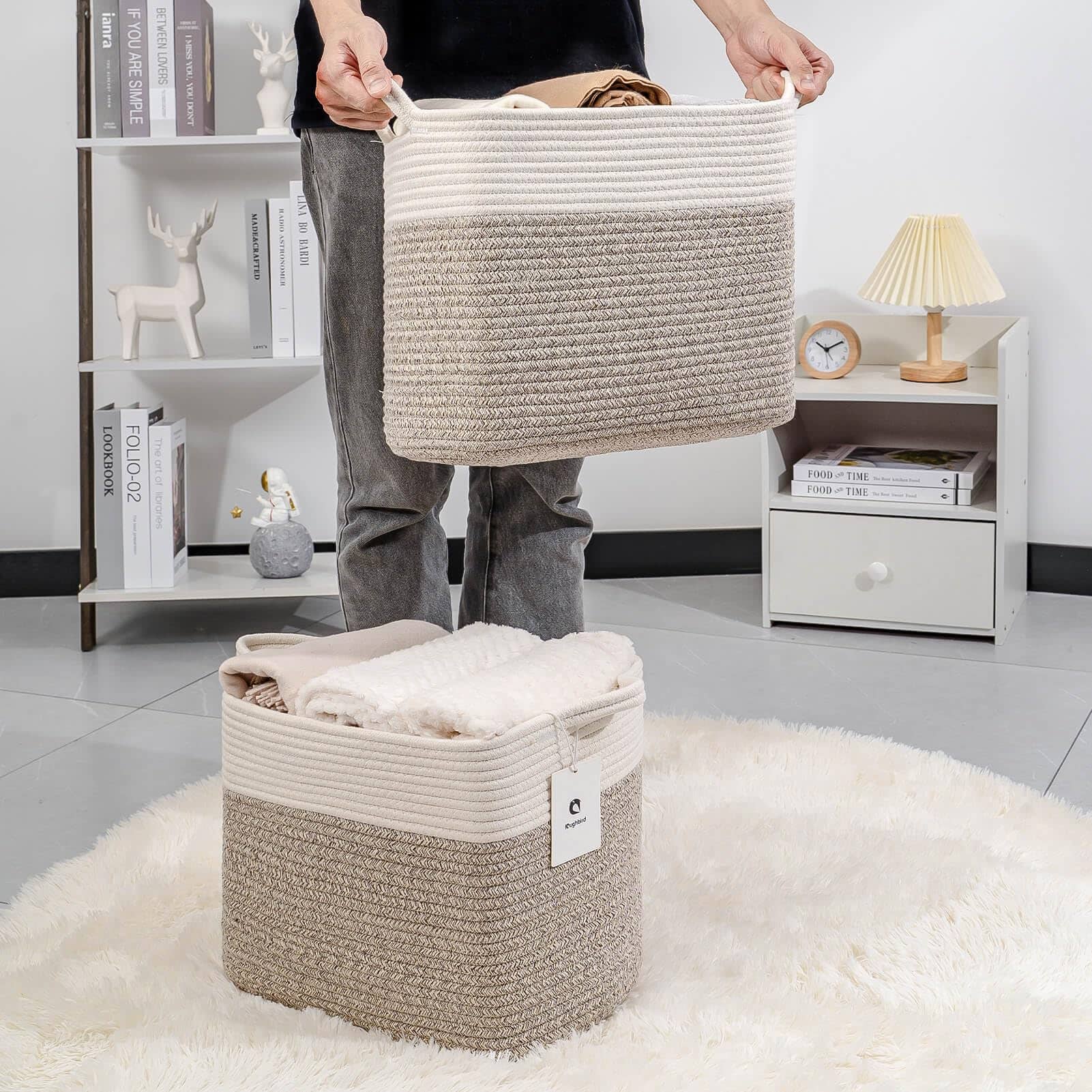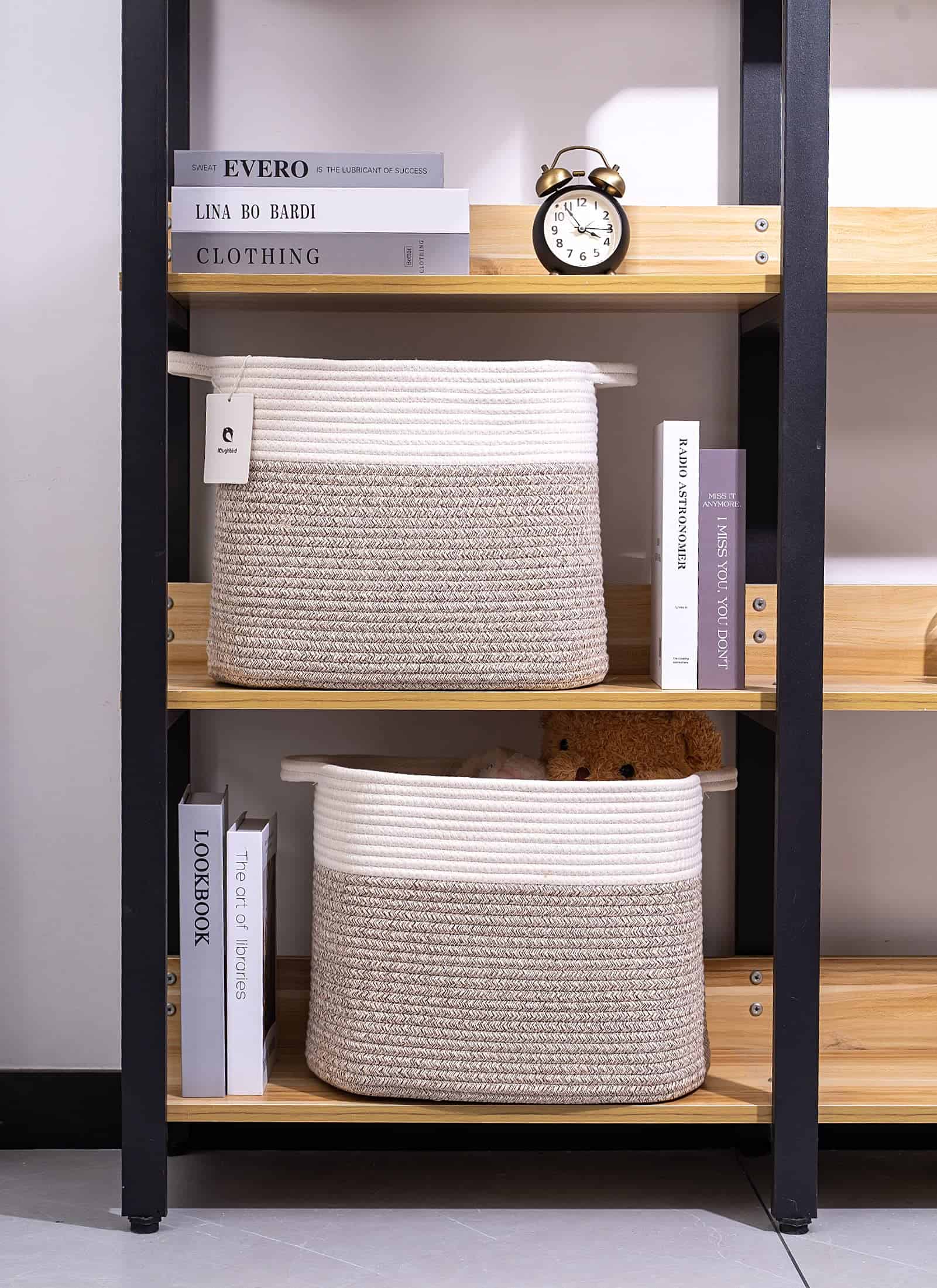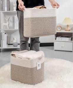 Cestas de lavandería plegables para estantes, cestas de almacenamiento de cuerda, cestas de almacenamiento