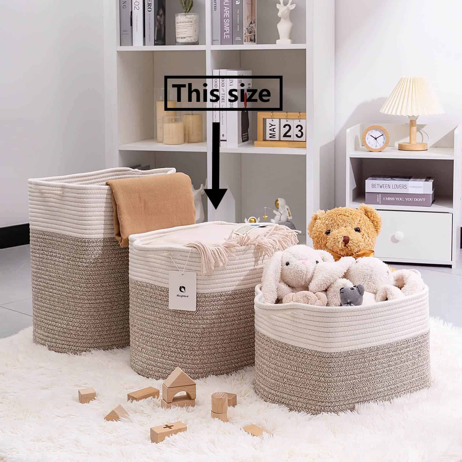 Cesto Tejido Mediano y Grande con Asa para Juguetes y