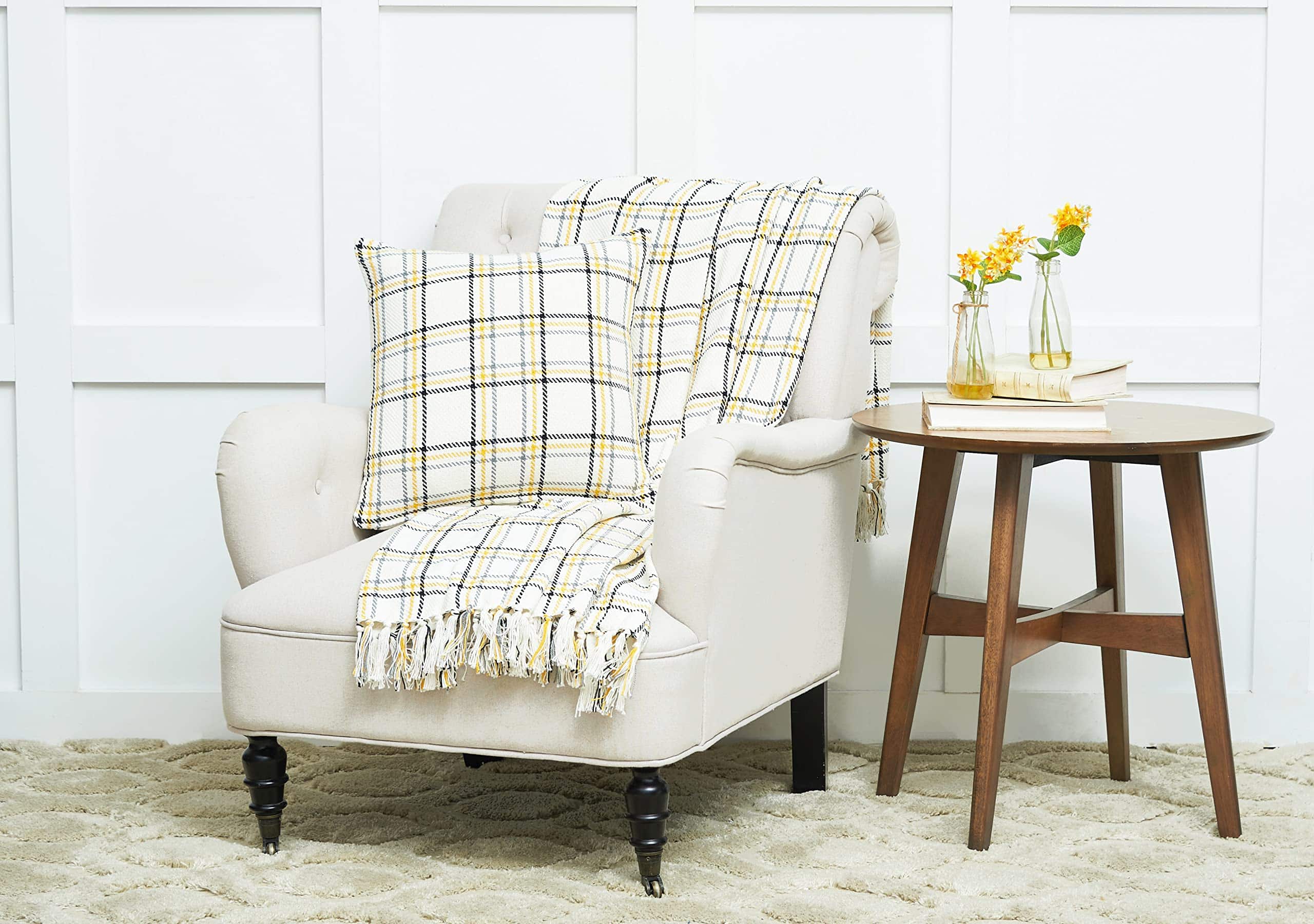 C&F Home Honey Bee Plaid Manta de sofá Amarilla con Patrón