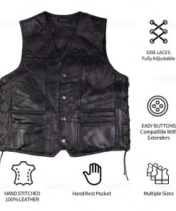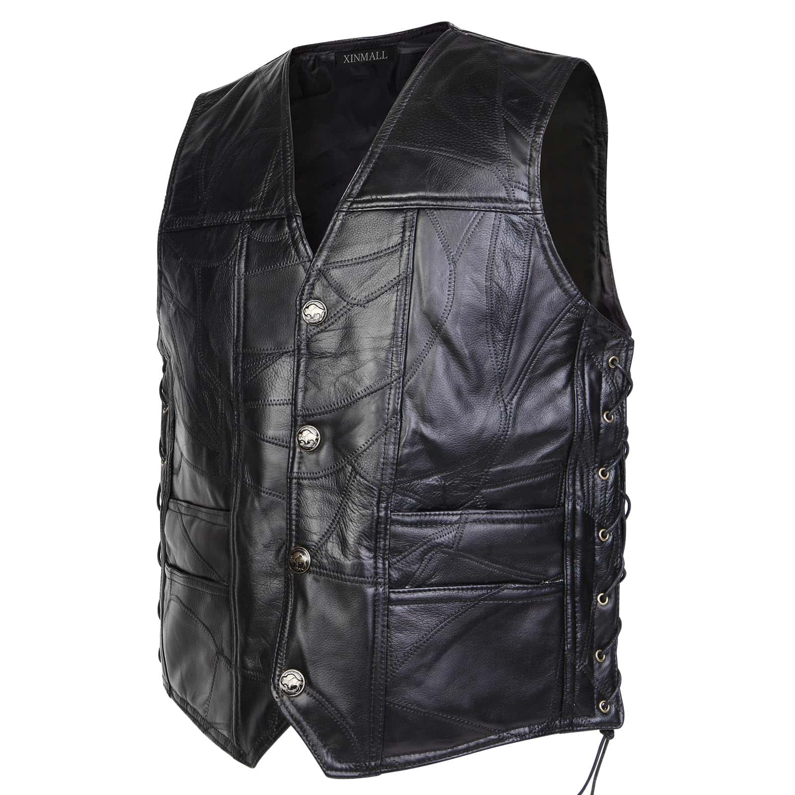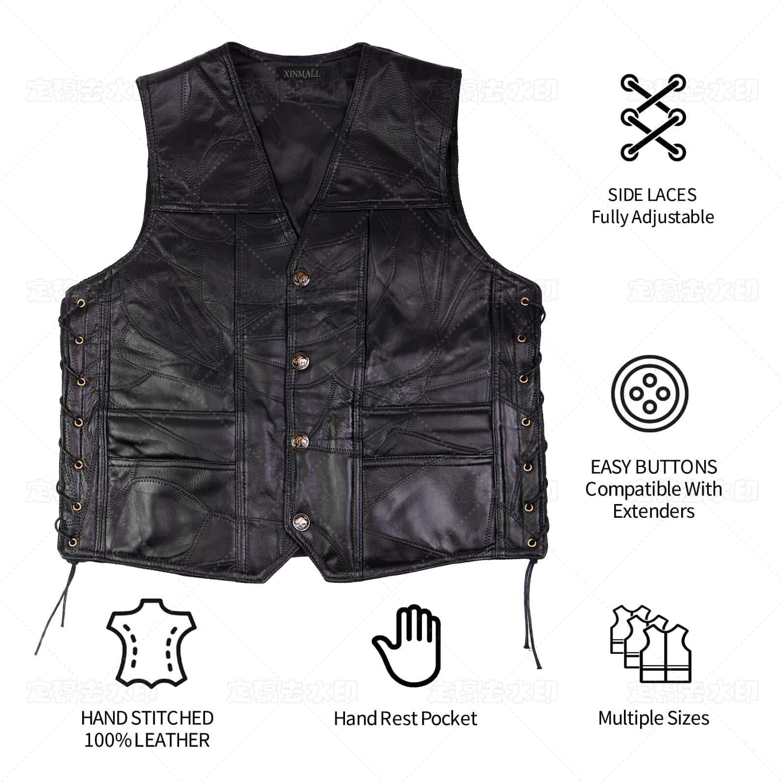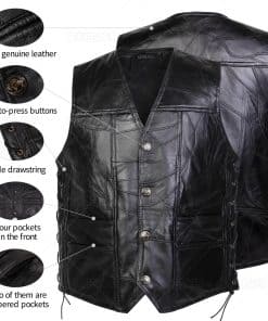 Chaleco de Cuero Genuino para Motocicleta para Hombres