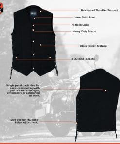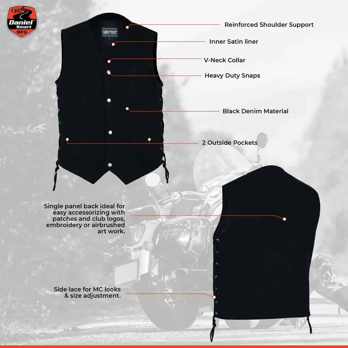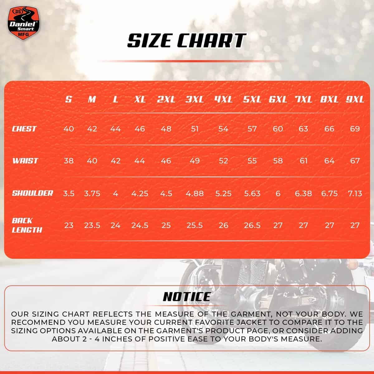 Diferentes tallas con look moderno y atractivo: Si estás buscando un chaleco de motociclista de alta calidad para hombres a un precio asequible, Daniel Smart tiene lo que necesitas con un diseño único en mezclilla negra con cordones laterales en el chaleco de motociclista para hombres que te promete un look elegante y a la moda. El chaleco de mezclilla para hombres de Daniel Smart viene en una variedad de tallas que van desde S a 9XL para garantizar que encuentres el mejor ajuste. El chaleco de mezclilla para hombres de Daniel Smart es un estilo inteligente y moderno para llevar, ideal para motoristas que quieren mantenerse en la carretera. Para más detalles, consulta la imagen de la tabla de tallas.