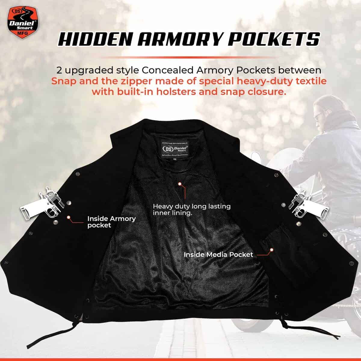 Premium Quality Denim: El chaleco para hombres de Daniel Smart está hecho de mezclilla premium, con un forro interior de satén para una excelente circulación de aire y un lado liso para ajuste de tamaño, lo que lo hace duradero y elegante. El soporte de hombro reforzado en este chaleco para hombres permite la máxima ocultación del armamento.
