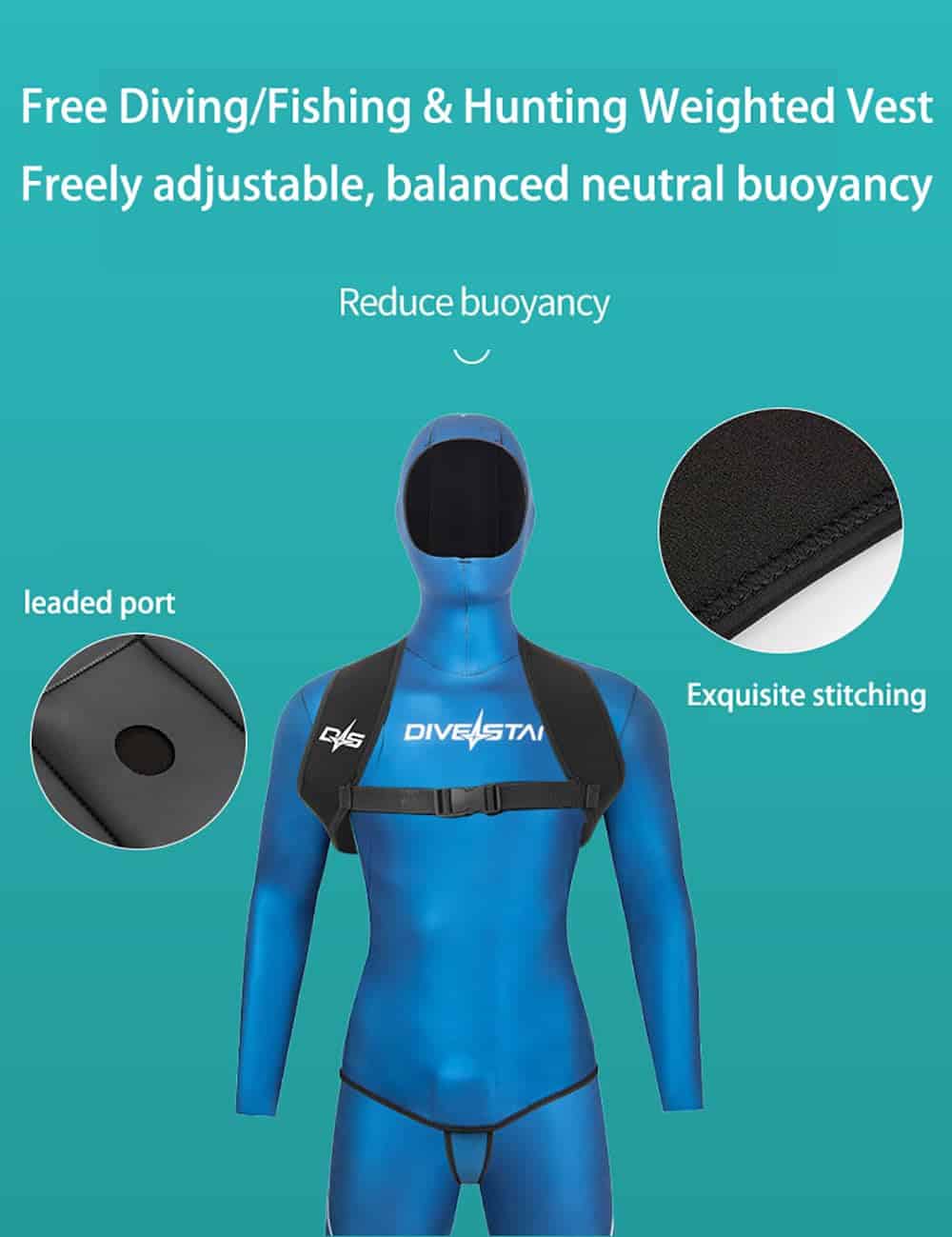 4. MultiaplicaciónChaleco de Pesas DiveStar Perfecto para Buceo, Pesca Submarina, Adleboarding, Kiteboarding, Wakeboarding, Kayak, Canoa, Natación y Otros Deportes Acuáticos. La Mejor Idea de Regalo para Madre, Padre, Familia, Amigos, Amantes, etc.