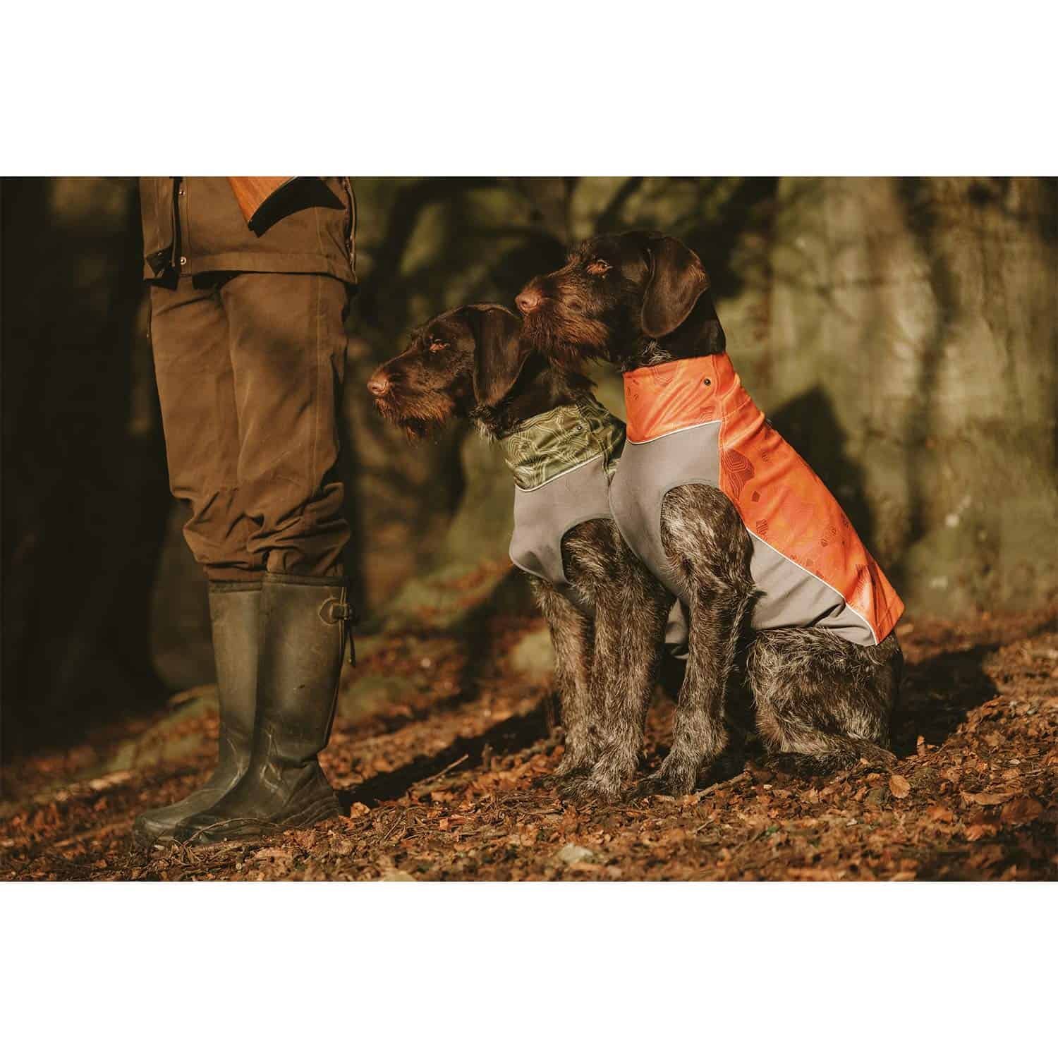 El Chaleco Worker es un chaleco ligero de alta visibilidad para actividades al aire libre y caza incluso en la oscuridad. Los abundantes estampados reflectantes y el cordoncillo reflectante 3M garantizan una buena visibilidad. El chaleco está hecho de un tejido elástico y transpirable con una capa de Houndtex resistente a la intemperie. El chaleco está forrado con un tejido suave similar a una malla. El material es duradero y no produce ruidos al moverse. La solapa del vientre está hecha de tela Cordura duradera y resistente al desgaste. La tela Cordura está diseñada para resistir un desgaste mecánico extremadamente alto en condiciones exigentes. Al moverse en los bosques o campos, existe el riesgo de que las ramas arañen el vientre y el pecho del perro. La solapa del vientre del chaleco está diseñada para proteger el pecho y el área delicada del vientre del perro. La parte trasera del chaleco tiene cierre de cremallera con un mecanismo de bloqueo en el deslizador que evita que la cremallera se abra cuando el perro se mueve. El ajuste ceñido hace que el chaleco sea ergonómico y seguro. El collar protector tiene correas desmontables para asegurar un collar GPS. La solapa del vientre protectora de Cordura se puede cortar al tamaño adecuado para ajustarse a un perro macho, por ejemplo. En el interior del chaleco hay líneas impresas que facilitan cortar la solapa del vientre en la forma correcta. Use tijeras para cortar la solapa en forma, cuidando de no cortar sobre las costuras.