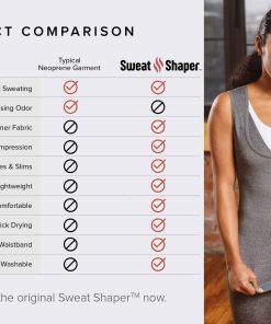 Sweat Shaper utiliza una tela de polímero que atrapa el calor para aumentar su temperatura corporal natural y estimular la transpiración con cualquier tipo de actividad física. Al usar Sweat Shaper durante el ejercicio o actividades diarias, creará una experiencia similar a un sauna caliente. Su temperatura corporal aumentará, lo que le hará sudar más. Gracias a la tela de compresión de alto rendimiento de Sweat Shaper diseñada especialmente, instantáneamente lucirá más delgada y tonificada en el momento en que se lo ponga. Ocultará su barriga, moldeará su cintura y destacará sus curvas. Si desea sentir un estómago plano, cintura pequeña y una figura de reloj de arena, Sweat Shaper es la ropa de entrenamiento ideal. En comparación con alternativas de neopreno de baja calidad, Sweat Shaper no tiene olor, es más ligero, se seca más rápido y es lavable a máquina. Sweat Shaper ha sido diseñado para que sea increíblemente ligero y cómodo de llevar incluso durante periodos prolongados. Se moldea y se mueve con su cuerpo durante los entrenamientos en el gimnasio o cuando corre recados. Excepcionalmente flexible, con un respaldo estilo tanque tradicional y soporte de busto bajo en la parte delantera para que pueda usar cómodamente un sujetador deportivo debajo. El material de polímero repele la humedad para secarse rápidamente y permanecer fresco para no sentirse mojado por la transpiración excesiva. La mezcla exclusiva de tejidos de Sweat Shaper ha sido especialmente seleccionada para crear el mejor chaleco de mujer en Advanced Sweatwear. Consta de dos capas: la tela térmica interna de polímero aumenta su temperatura central para promover la sudoración. La tela de compresión de alto rendimiento externa instantáneamente adelgaza y moldea su figura. Terminado con una banda antideslizante en la cintura para asegurar que se mantenga en su lugar y no se mueva en su cuerpo, especialmente durante entrenamientos intensos. Estamos seguros de que Sweat Shaper es el mejor chaleco activo disponible hoy para mujeres. Como resultado, ofrecemos una garantía del fabricante. Si no está 100% satisfecho con su Sweat Shaper, simplemente contáctenos y reemplazaremos o reembolsaremos su pedido. ¡Sin hacer preguntas!