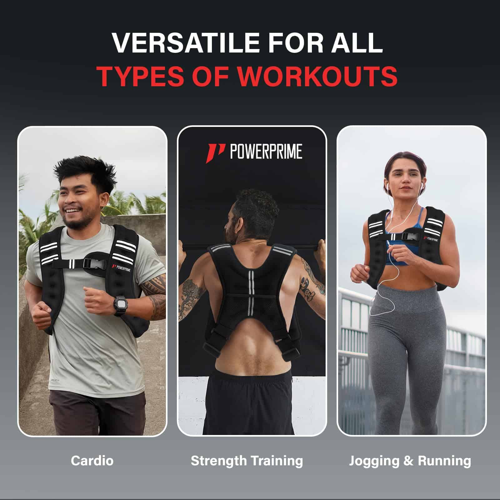 1. Aumenta la intensidad de tu entrenamiento: Eleva tu rutina de ejercicio con el Chaleco Ponderado PowerPrime, añadiendo 11 lbs (5 kg) de resistencia a tus ejercicios. Ya sea que practiques correr, HIIT o entrenamiento de fuerza, este chaleco aumenta la quema de calorías y acelera el desarrollo muscular, ayudándote a alcanzar tus metas de fitness más rápido.