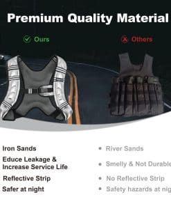 2. Ajuste cómodo y durabilidad: Nuestros chalecos con peso están hechos de materiales transpirables y duraderos que son cómodos de llevar, con correas acolchadas para los hombros y telas suaves y no irritantes que te brindan la máxima comodidad en todos los deportes sin cargar la espalda o los hombros, siempre permaneciendo ultra-rígidos, transpirables y suaves, lo que los hace ideales para todos los entusiastas del deporte.