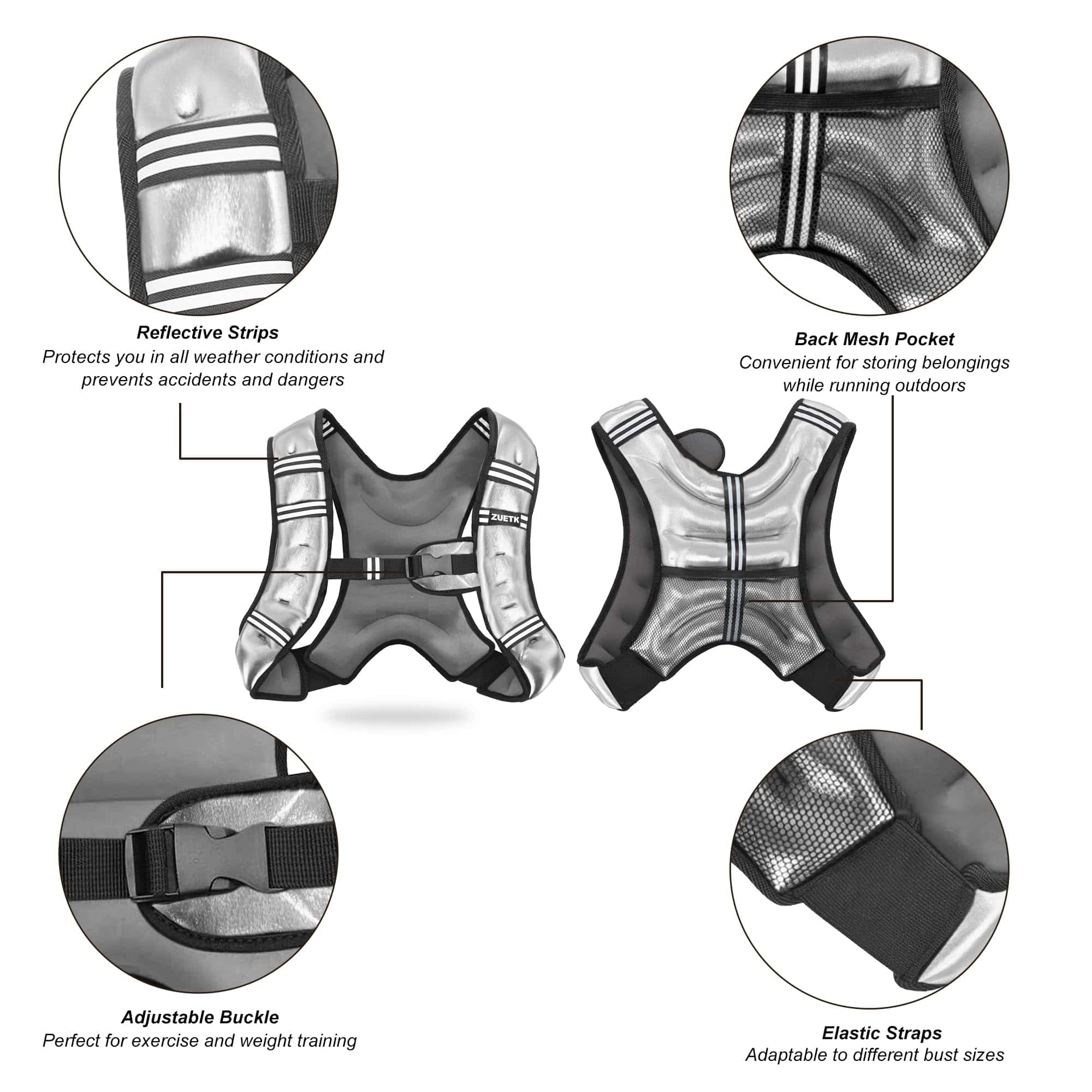 Chaleco ponderado ZUETK, chaleco de -Plata