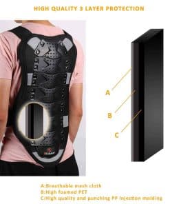 Si conduces motocicletas, deberías elegir este chaleco para protegerte eficazmente. Este chaleco es cómodo y te mantiene seguro durante tus aventuras. Una combinación perfecta de estilo y funcionalidad. Puede ser utilizado para montar en moto y bicicleta, esquiar, patinar, o cualquier otra actividad. Características: Material: La carcasa de plástico está hecha de alta calidad mediante moldura por inyección resistente de PP, y el forro interior es malla de poliéster + EVA ambiental La cintura es elástica y se une con un cierre para un fácil uso. Triple protección: carcasa de plástico PP + forro perforado + 2 capas de almohadilla de protección de EVA Especificaciones: Marca: Ridbiker Tipo: Chaleco de protección reflectante Tipo de deporte: motociclismo, esquí, otros deportes al aire libre Tallas: S: longitud (17 pulgadas) / Cintura (31.5~37.5 pulgadas) / Altura (51.2~55.1 pulgadas) M: longitud (19.8 pulgadas) / Cintura (33.5~41.3 pulgadas) / Altura (55.1~63.0 pulgadas) L: longitud (22.4 pulgadas) / Cintura (37~44.5 pulgadas) / Altura (63.0~70.8 pulgadas) XL: longitud (24.4 pulgadas) / Cintura (41.3~53.1 pulgadas) / Altura (70.8~78.7 pulgadas) Color: negro Material: carcasa de PP, tela de licra, EVA de alta densidad Género: Unisex Peso: 1.42 libras (S) / 1.53 libras (M) / 1.67 libras (L) / 1.84 libras (XL) Incluido en el paquete: 1 chaleco de protección reflectante