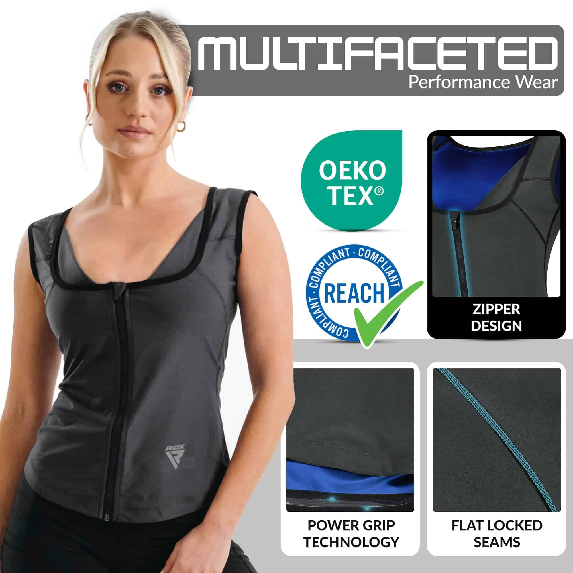 Chaleco Sauna para Mujer RDX Trampa de Calor -Gris con Cierr