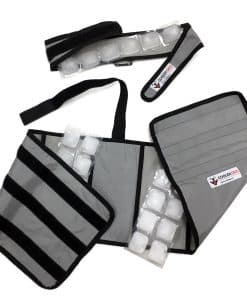Ayude a prevenir el estrés por calor en los perros con el Chaleco de Hielo para Perros CoolerDog y el Collar de Enfriamiento. Ideal para días calurosos, climas húmedos y razas propensas al sobrecalentamiento. Simplemente congela el hielo puro FlexiFreeze y colócalo en el chaleco donde eliminará el calor de debajo del cuerpo de su perro (¡Sí, debajo! Los veterinarios están de acuerdo en que esto es más apropiado). El Collar de Enfriamiento también utiliza la misma tecnología y puede incluso utilizarse de forma independiente. Es una ciencia simple: No hay nada más efectivo para reducir la temperatura corporal que el agua pura CONGELADA en FlexiFreeze. Diseño simple permite una gran flexibilidad en 4 tamaños. Completamente lavable, sin hebillas que pellizquen. El hielo adicional FlexiFreeze es económico y fácilmente disponible. Recomendamos llevar un par de juegos extra de Ice Cooler Dog en su Cooler FlexiFreeze de 9 Latas para mantener a su perro fresco durante todo el día.
