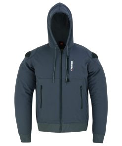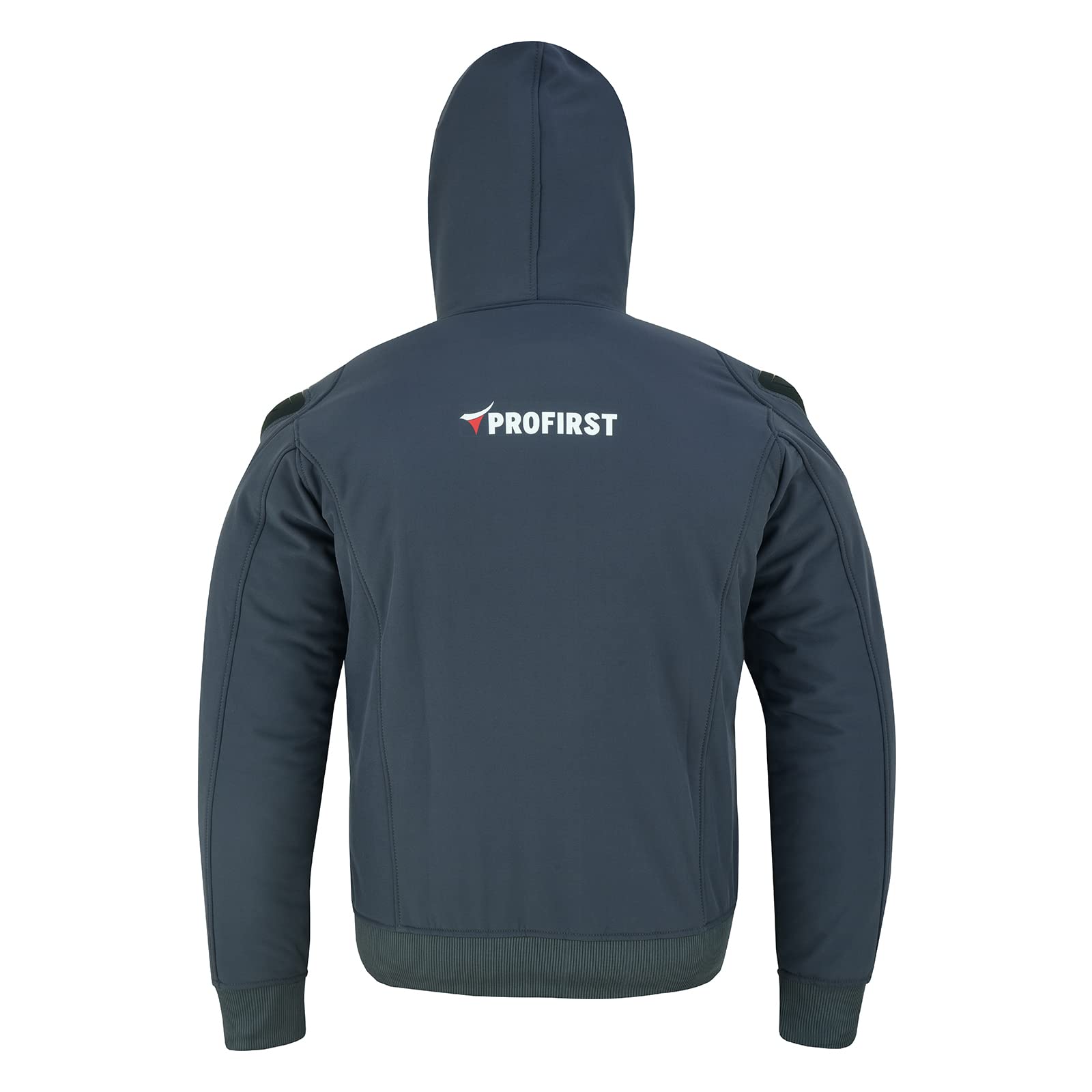 La chamarra con capucha para motocicleta PROFIRST está diseñada para ofrecer protección y comodidad. Cuenta con armaduras CE removibles en hombros, codos y espalda para una absorción de impactos superior y libertad de movimiento. El exterior incluye 2 bolsillos con cremallera, puños acanalados, capucha ajustable con cordón y cinturilla elástica. En el interior, tiene forro de malla con un bolsillo y asas para colgar. La construcción del cuello evita la entrada de aire frío. Esta chamarra puede lavarse a máquina para mayor comodidad.