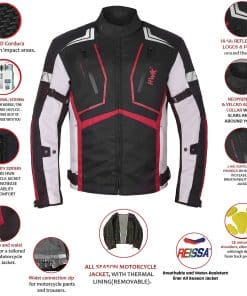 HWK es una marca establecida por motociclistas, para motociclistas. Vivimos en un país con muchos extremos climáticos, donde puedes experimentar las cuatro estaciones. Aquí es donde creció el equipo de HWK, por lo que entendemos las características y funciones requeridas para una chamarra de moto para todas las estaciones que sea resistente al agua y al clima. Nuestra chamarra de moto HWK Escorpión es resistente y fuerte, pero suave y cómoda. Te mantendrá cálido durante el invierno, fresco durante el verano y seguro todo el tiempo. Está hecha de una tela de micro malla y membrana transpirable Reissa que te mantiene cómodo en todas las condiciones de conducción. Cinco bolsillos de ventilación de aire te mantienen fresco durante el verano, mientras que un forro térmico extraíble te mantiene cálido durante el invierno. Ajusta cómo queda tu chamarra con tiras de velcro en los brazos, muñecas, cuello y cintura. Conecta tu chamarra biker textil y pantalones con una cremallera de alta calidad. Combina tu chamarra con tus Pantalones de Moto HWK para una conexión perfecta. Conduce seguro y con confianza con la armadura CE en los codos, hombros y espalda, tela de poliéster 600D Cordura en áreas de alto impacto y acolchado de espuma de alta densidad en la parte trasera de tu chamarra de moto de enduro. Mantén tus objetos de valor seguros con los amplios bolsillos de almacenamiento externos e internos de tu chamarra de moto deportiva dual. Un logotipo reflectante de HWK en el pecho y ribetes blancos de alta visibilidad a lo largo de los hombros y brazos te mantendrán visible en condiciones oscuras. Elige entre nuestra selección de diseños completamente negros y de contrastes de 3 colores. Elige tu chamarra de escorpión basándote en esta guía de medición del pecho (pulgadas): S – 38», M – 40», L – 42», XL – 44», 2XL – 46», 3XL – 48» 4XL – 50» y 5XL – 52». Si estás entre tallas, elige la talla más grande para un ajuste fácil. MÁXIMA CALIDAD al PRECIO MÍNIMO. Apostamos a que no encontrarás accesorios para motociclistas para hombres y mujeres a este precio en el mercado de equipo de protección para motociclistas. ¡HWK para ser parte de nuestro creciente grupo de ENAMORADOS DE LAS MOTOS!