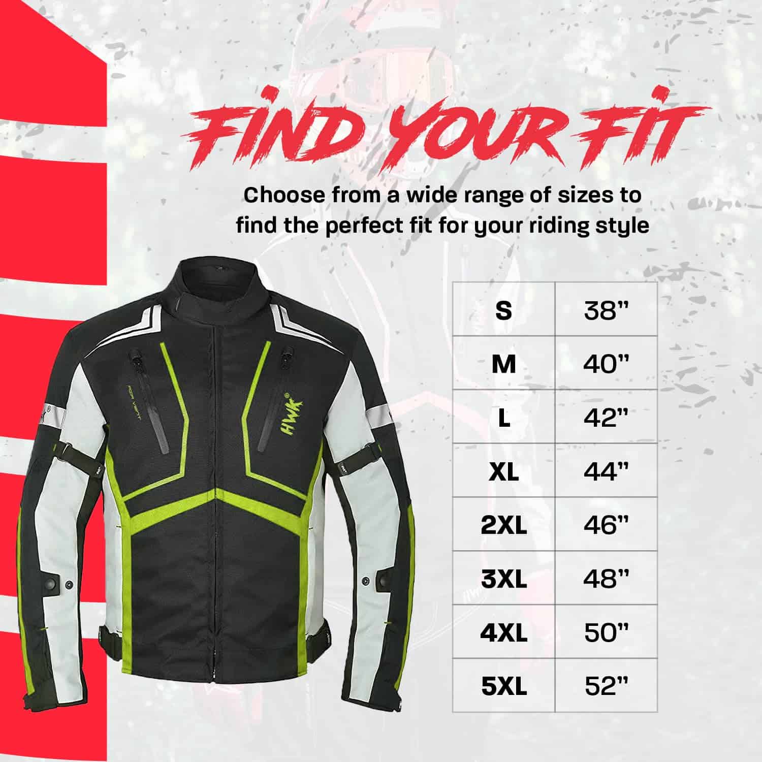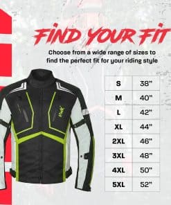 5. Ajuste Perfecto. Asegúrate de equiparte correctamente para cada viaje en moto con nuestra guía de medida de pecho. Nuestras tallas van desde la talla S hasta la 5XL. Si estás entre tallas, elige la más grande para movimientos más atrevidos en el camino.