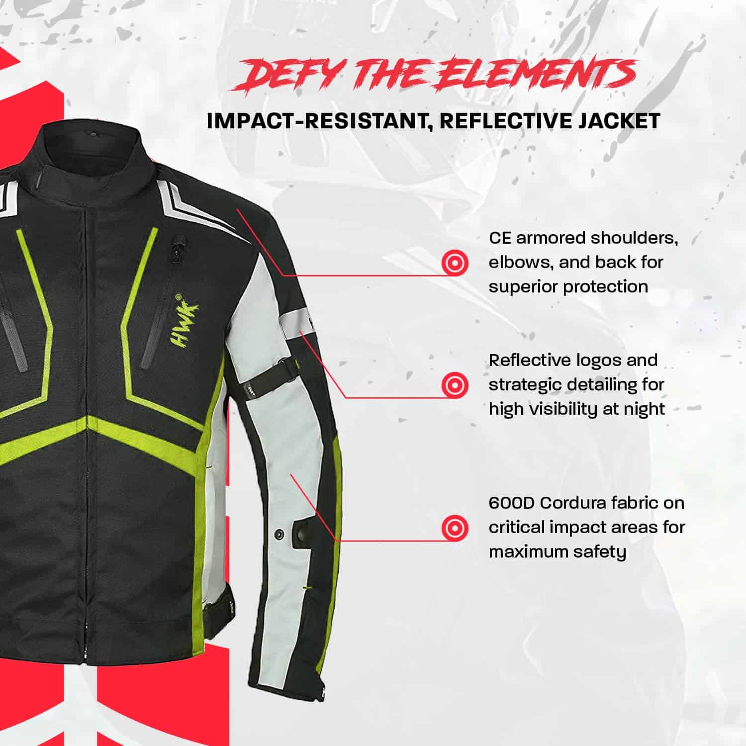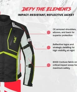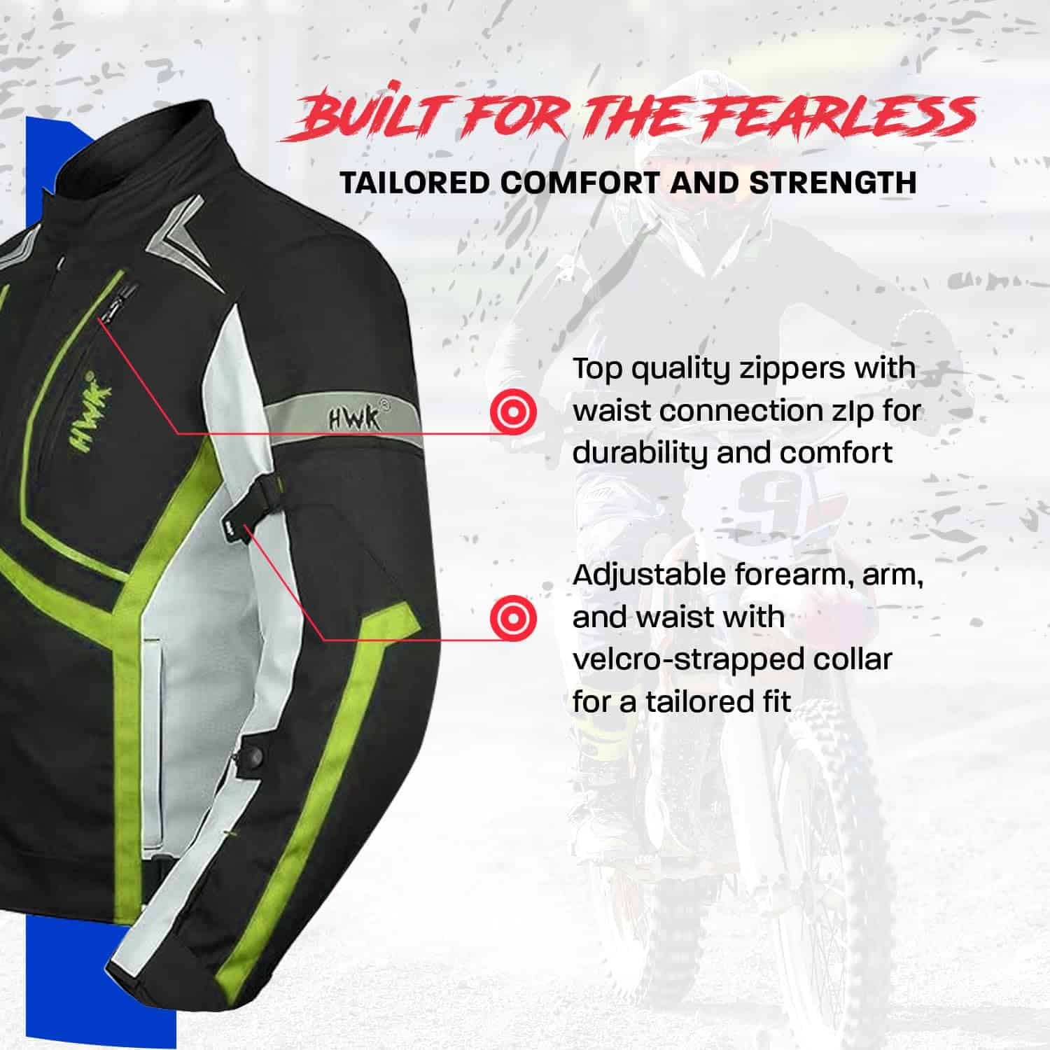 Chamarra de moto HWK Scorpion para -Verde de gran visibilida