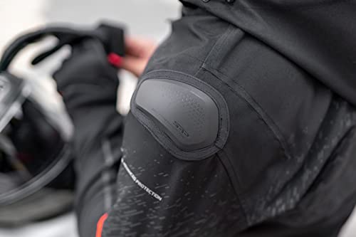 DRIFT+ es una chamarra diseñada para entusiastas de los paseos en la ciudad y salidas cortas en moto, incluso en días lluviosos. El modelo cuenta con una capa laminada a prueba de agua y costuras y cierres laminados, por lo que ninguna gota de agua puede entrar en tu chamarra. Ya no tendrás que preocuparte por que te sorprenda la lluvia durante un paseo en moto. Pensando en tu seguridad, el DRIFT+ está equipado con un juego de protectores homologados nivel 2 en espalda, hombros y codos, protectores de hombro SAP externos y grandes elementos reflectantes. También puedes equipar tu chamarra con un protector de pecho (se vende por separado). La capucha desmontable ya está incluida y el sistema EvoLink te permite combinar la chamarra con capas opcionales de calor o frío. Gracias a los paneles de ventilación (en las axilas y en los antebrazos) puedes regular el flujo de aire como prefieras. Además, la chamarra está equipada con una ventilación a lo largo de toda la cremallera principal. Con su cremallera corta, bucle de conexión y su clásico color negro, te permite combinarla con jeans u otros pantalones SHIMA para crear un look cómodo y seguro.