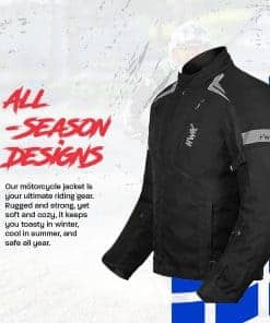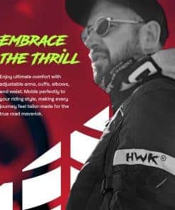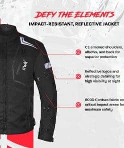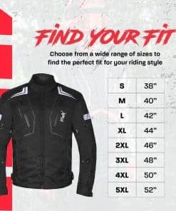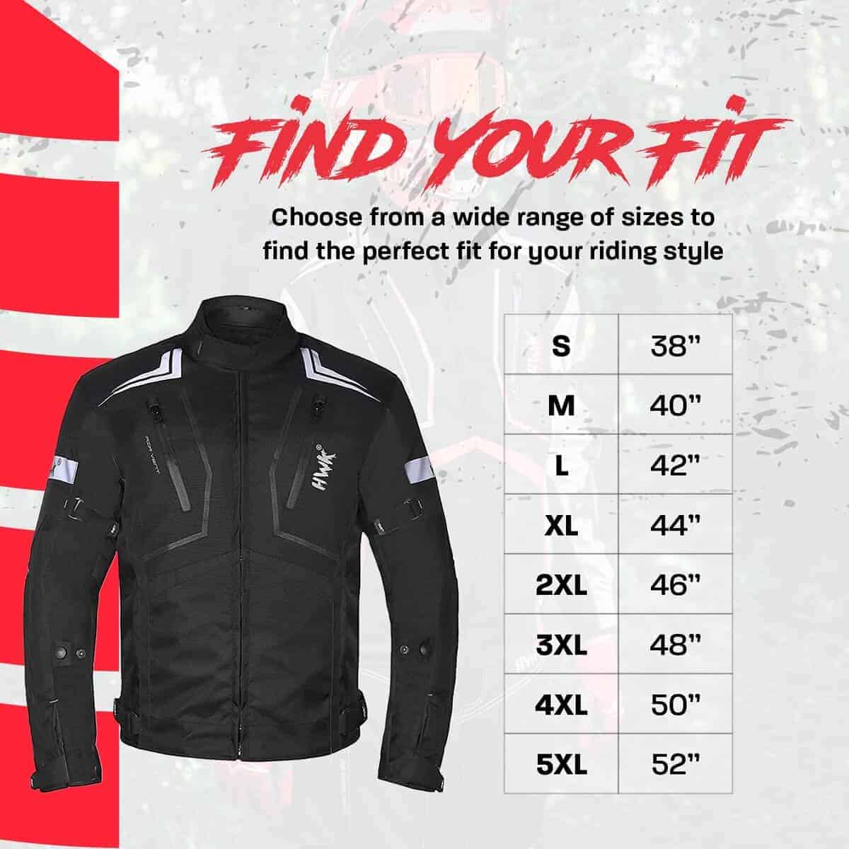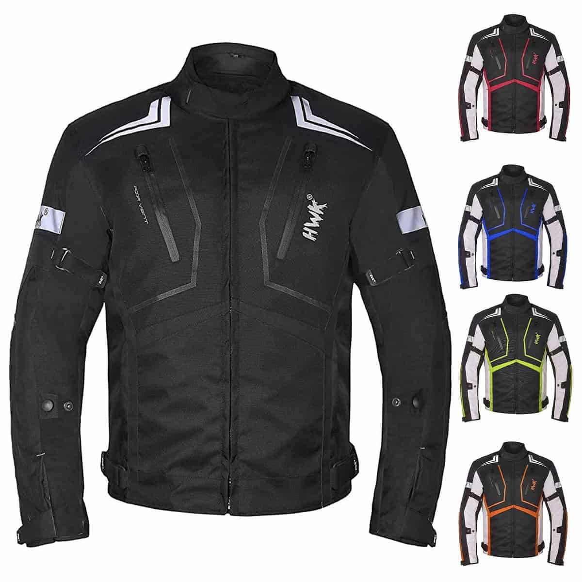Chaqueta de motocicleta HWK Scorpion perfecta para uso diario. Cuenta con una membrana transpirable resistente al agua Reissa, tejido de micro malla, 5 bolsillos de ventilación y forro térmico desmontable. Logo reflectante en el pecho y ribetes blancos de alta visibilidad en los hombros y brazos para condiciones de poca luz. Guía de tallas de pecho: S – 38», M – 40», L – 42», XL – 44», 2XL – 46», 3XL – 48» 4XL – 50» y 5XL – 52»
