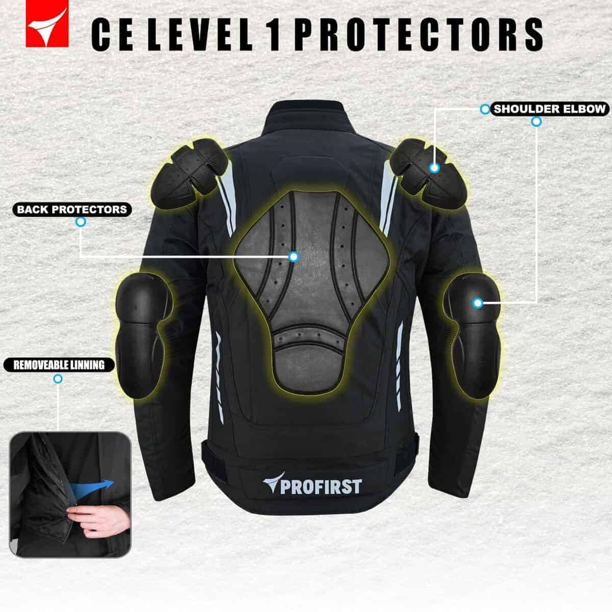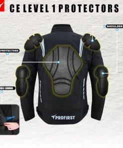 1. Características de seguridad: Las rayas reflectantes en la chaqueta mejoran la visibilidad en la carretera, garantizando tu seguridad durante condiciones de poca luz. Las protecciones de codos y hombros traseros están aprobadas por CE Nivel 1 de protección.