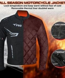 3. Protección impermeable: Esta chaqueta de motocicleta está construida con materiales impermeables para mantenerte seco y cómodo en condiciones húmedas.