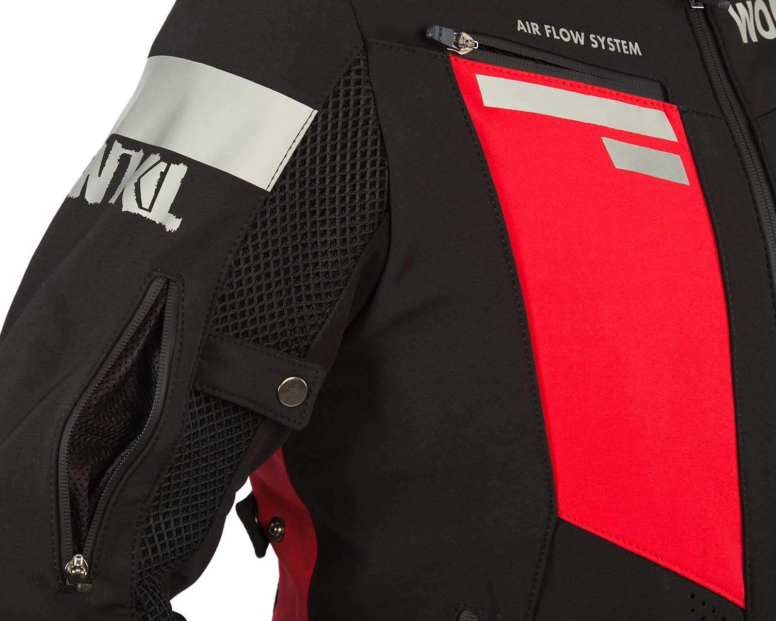 2. Esta chamarra motociclista para hombre está hecha de tela softshell (resistente al agua). Forro de malla, suave, cómodo y resistente. Detalles reflectantes al frente y atrás. Chamarra motociclista ligera en espalda, codos y hombros.