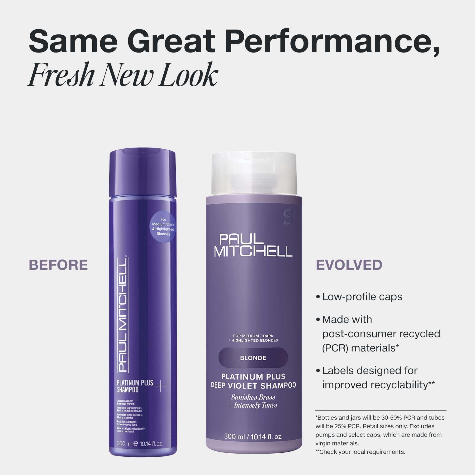 Responsabilidad Ambiental: Nuestro compromiso de reducir nuestro impacto ambiental es más fuerte que nunca. Por eso, el nuevo empaque de Paul Mitchell está hecho con materiales reciclados postconsumo (PCR), tapas de bajo perfil y etiquetas diseñadas para facilitar el reciclaje mejorado.