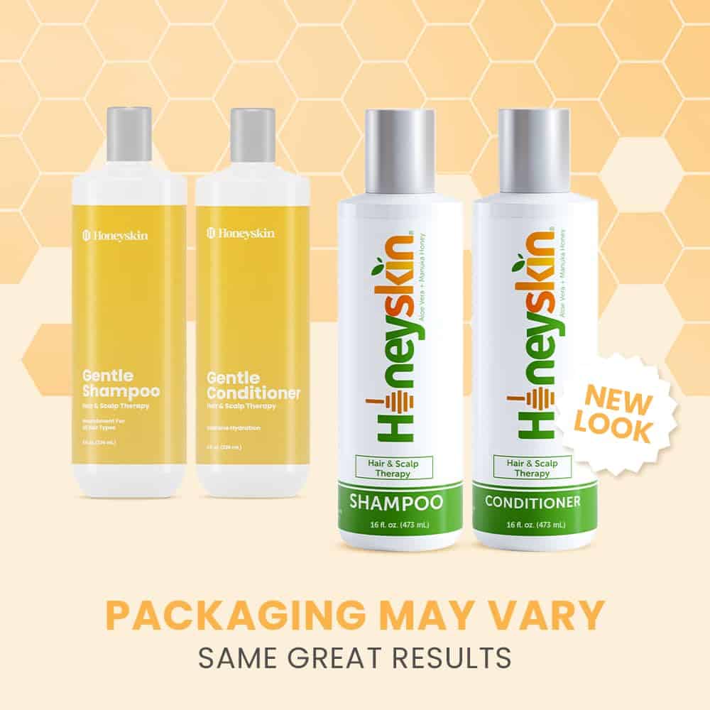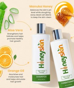 Champú y Acondicionador para el Crecimiento del Cabello con Manuka – Mejor Champú y Acondicionador para Cabello Delgado y Pérdida de Cabello – Champú y Acondicionador Hidratante Libre de Sulfatos para Cabello Teñido y Cuero Cabelludo. LIMPIA, CALMA Y HIDRATA – El Suave Champú de Crecimiento Capilar de Miel de Manuka Honeyskin no solo limpia y elimina la suciedad e impurezas, sino que también calma e hidrata el cuero cabelludo seco, con picazón, eczema, psoriasis, dermatitis y más. Este champú orgánico deja tu cabello y cuero cabelludo limpios, equilibrados y saludables. HIDRATA, NUTRE Y PROTEGE – Nuestro Champú Hidratante y Acondicionador para el Cabello mantendrá tu cabello y cuero cabelludo nutridos e hidratados. A diferencia de los productos para el cabello ordinarios, este set de champú y acondicionador orgánico repone la humedad rejuvenecedora, previniendo el encrespamiento, las puntas abiertas, la rotura y la caspa. TERAPIA CAPILAR Y DEL CUERO CABELLUDO – Este champú y acondicionador totalmente natural también ayuda a estimular los folículos capilares para un crecimiento capilar sano y natural. Nuestro champú y acondicionador para el crecimiento del cabello para mujeres y hombres te ayudarán a lograr no solo mechones más suaves y suaves, sino también un cabello más saludable, más grueso y con un aspecto más completo. INGREDIENTES NATURALES Y ORGÁNICOS – A diferencia de la mayoría de los productos para el crecimiento del cabello, nuestro champú y acondicionador para cuero cabelludo con picazón y adelgazamiento del cabello están infundidos con algunos de los ingredientes más poderosos de la naturaleza como Miel de Manuka, Aloe Vera, Cehami y Aceite de Naranja para mantener tu cabello y cuero cabelludo fuertes, nutridos y sanos. FÓRMULA SUAVE Y PH BALANCEADO – El champú sin sulfatos para pérdida de cabello y cabello delgado, y el humectante para el cabello con aloe vera para cuero cabelludo seco son sin parabenos, sin gluten, sin aceite mineral y sin fragancias sintéticas. Este champú y acondicionador de coco de pH balanceado son seguros, efectivos y adecuados para todo tipo de piel y cabello!