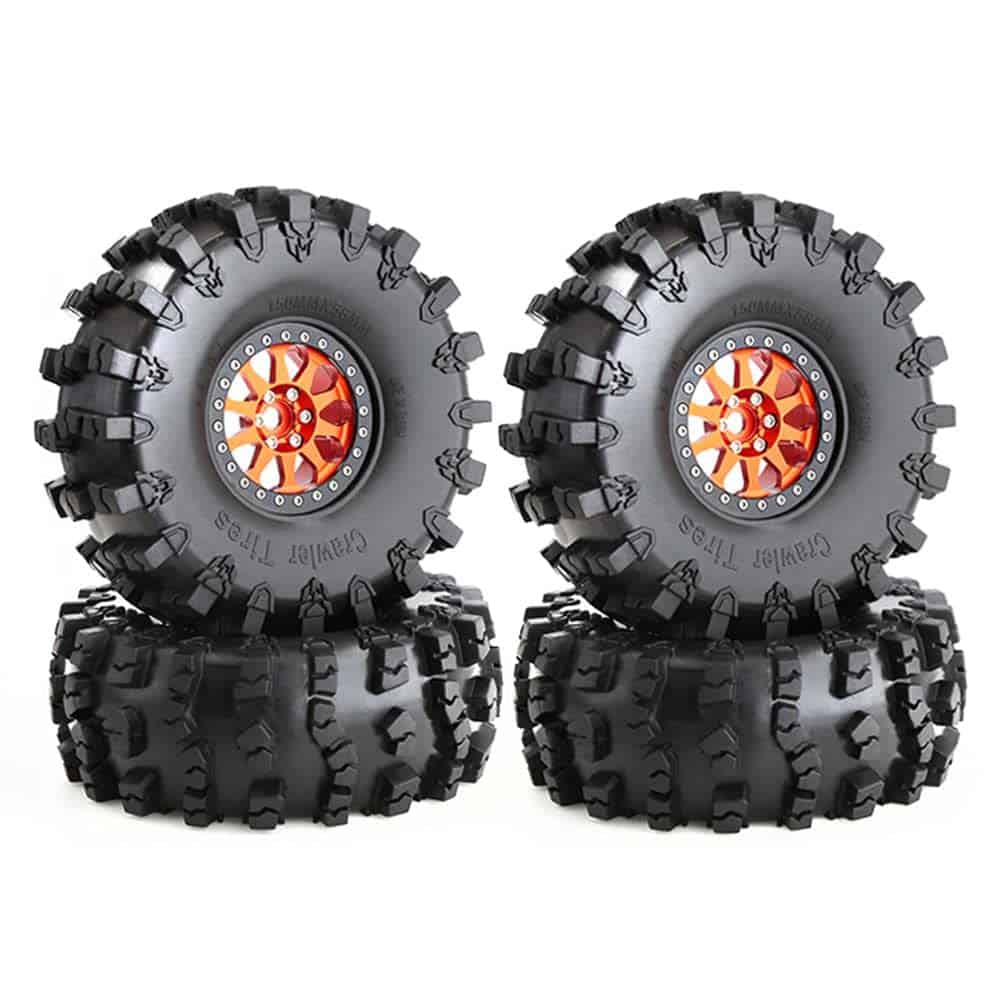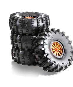 Las llantas y neumáticos de crawler 2.2 son diseños especiales y mano de obra precisa, el cubo de llantas de metal resistente puede brindar un buen soporte para el neumático. Los neumáticos de goma tienen un agarre fuerte.