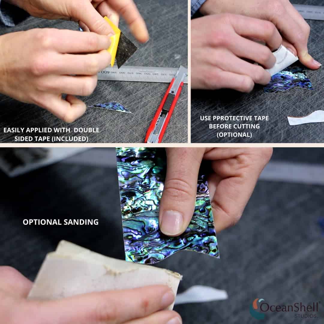 Chapa de incrustación de concha de abulón para adornos de incrustación para bricolaje o profesionales. Fabricado en finas láminas de concha de abulón exclusivamente, SIN laminados de plástico. Las láminas de concha están especialmente unidas en una hoja. Las hojas de concha están recubiertas con un acabado brillante. Nuestras conchas provienen de fuentes sostenibles de nuestro negocio familiar en Nueva Zelanda y son rastreables. Viene con cinta adhesiva de doble cara que facilita aún más las incrustaciones. Se proporciona por separado para que lo aplique en la parte trasera de la chapa de concha. Fácil de pelar. Las chapes también se pueden usar en muebles, obras de arte e instrumentos musicales, o para muebles más grandes del hogar, creaciones de carpinteros y superficies de salpicaduras. Las hojas se pueden usar para incrustaciones de joyería, incrustaciones de cajas, incrustaciones de guitarra e instrumentos musicales, proyectos creativos, arte de uñas con concha y manualidades educativas. Diseñadas para aplicaciones interiores, las chapas son una característica decorativa única que se puede agregar a una amplia gama de superficies para embellecer y agregar valor. La concha es un producto natural con una variedad de factores que afectan la apariencia. La configuración de su pantalla también afecta su visualización de los colores y el iridiscencia en las hojas de concha.