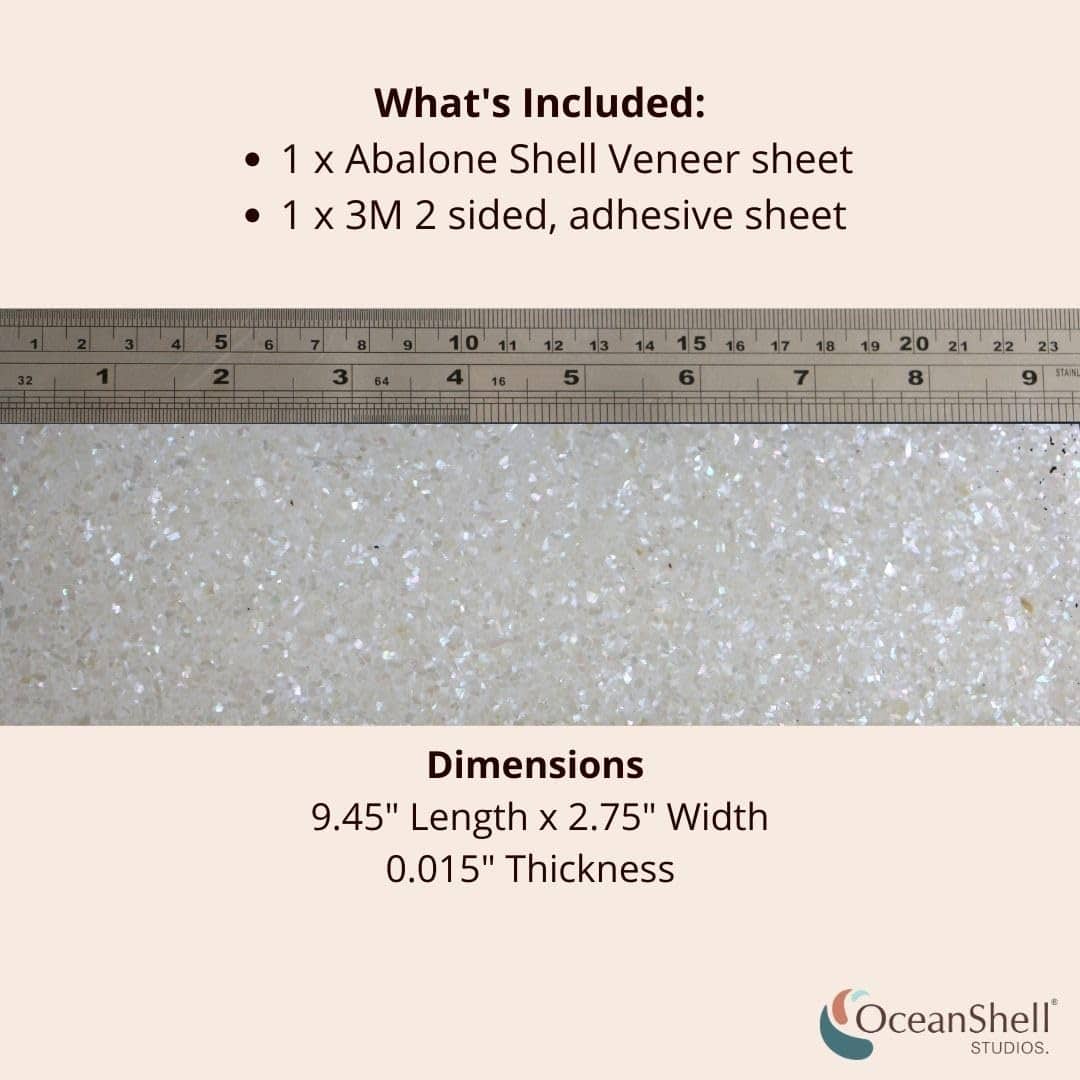 Chapa de incrustaciones de concha de abulón para decoraciones de incrustaciones DIY o profesionales – Sostenible Nueva Zelanda Paua Galaxy Light- Con cinta adhesiva de doble cara 3M – 9.45″X2.75″. Las conchas son obtenidas de manera sostenible por nuestro negocio familiar en Nueva Zelanda y son rastreables. Viene con cinta adhesiva de doble cara que hace que las incrustaciones sean aún más fáciles. Se proporciona por separado para que la apliques en la parte posterior de la chapa de concha. Fácil de pelar. Las chapas también se pueden utilizar en muebles, arte e instrumentos musicales, o para revestimientos de mayor tamaño, creaciones de carpinteros, y superficies de salpicaduras. Las láminas pueden utilizarse para incrustar joyas, cajas, guitarras e instrumentos musicales, proyectos creativos, arte de uñas con conchas y manualidades educativas. Diseñadas para aplicaciones interiores, las chapas son un elemento decorativo único que se puede agregar a una amplia gama de superficies para embellecer y agregar valor. La concha es un producto natural con una variedad de factores que afectan la apariencia. La configuración de su pantalla también afecta la visualización de los colores e iridiscencia en las láminas de concha.