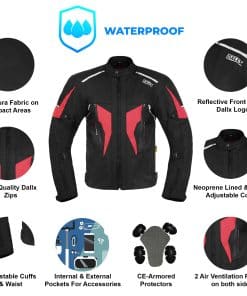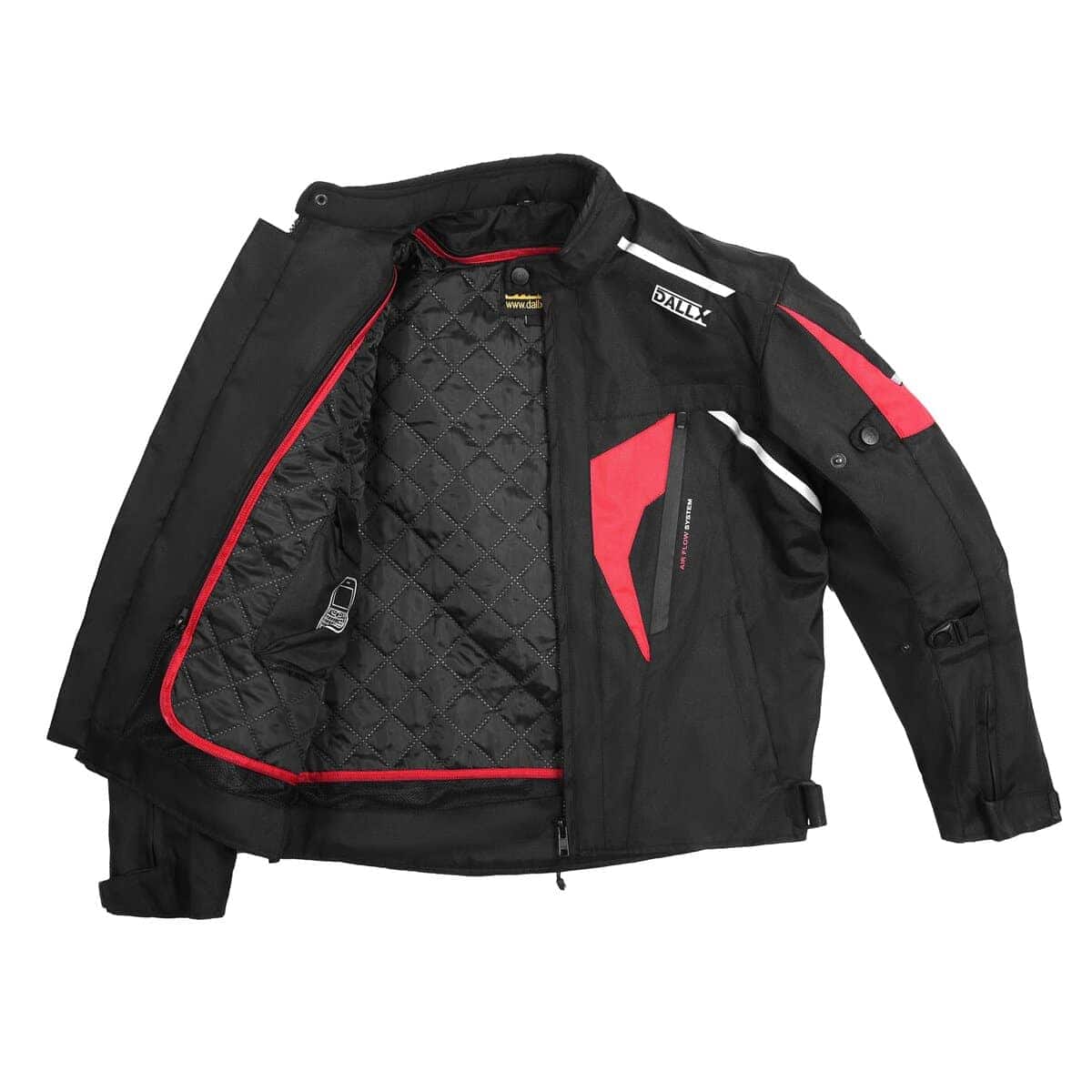 La chaqueta de moto textil DALLX está hecha de tela 600D Cordura de calidad y resistente, que protege contra abrasiones, cortes y efectos durante el viaje. Cuando estás montando en moto, es siempre importante asegurarte de que estás usando los accesorios requeridos y adecuados. Esta chaqueta de moto con armadura es uno de los equipos de seguridad importantes para los motociclistas. Nuestras chaquetas de motociclista son perfectas para todo tipo de condiciones climáticas. Características: Hecho de la chaqueta de moto de calidad 600D Cordura. Membrana Reissa tiene chaquetas de motocross 100% impermeables. Armadura aprobada por CE en hombros, codos para protección. Bolsillos externos e internos para mejorar el almacenamiento de chaquetas de motociclista y valor de almacenamiento. El sistema de ventilación para la parte frontal y trasera hace que la chaqueta todoterreno sea transpirable y libre de sudor. Paneles elásticos en los codos de las chaquetas de moto de aventura permiten la flexibilidad de los brazos. Doble costura de alta calidad en la chaqueta de motociclista. Forro suave en las muñecas y cuellos para proporcionar una experiencia de conducción en moto adecuada. Botones de plástico sin óxido para mejorar la resistencia de la chaqueta. Chaquetas de motociclista de alta calidad a un precio asequible. Haz clic en Agregar al Carrito y obtén hoy el Chaleco de Cuero DALLX con Ajuste Lateral Ajustable!