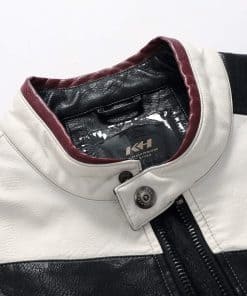 Chaqueta de cuero de moto para hombre con cuello alto de