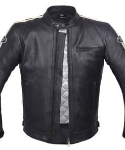 WEEKND WARRIORS chaqueta de cuero para motocicleta es una pieza esencial de equipo para los pilotos, ofreciendo tanto estilo como protección. He aquí una descripción detallada: Material Nuestra chaqueta de cuero para motocicleta está elaborada con cuero genuino de alta calidad de primera capa con un grosor de 1.2 – 1.3 mm, para proporcionar durabilidad y resistencia a la abrasión. Diseño Nuestra chaqueta de cuero para motocicleta está diseñada para proporcionar máxima protección mientras se conduce. Cuenta con un ajuste ceñido para reducir la resistencia al viento y el aleteo mientras se conduce a altas velocidades. Armadura Estas chaquetas de cuero modernas para motocicletas están equipadas con acolchado de protección de armadura desmontable aprobado por CE. Esta armadura está ubicada en zonas de impacto críticas como los hombros, codos y la espalda, proporcionando protección adicional al piloto. Cierre Esta chaqueta de cuero para motocicletas presenta un sistema de cierre frontal, con una cremallera de metal resistente. Esto asegura que la chaqueta se mantenga firmemente abrochada incluso durante los paseos a alta velocidad. Bolsillos Se incorporan múltiples bolsillos en el diseño para proporcionar un amplio almacenamiento para elementos esenciales como llaves, carteras o teléfonos inteligentes. Estos bolsillos tienen cierres con cremallera para mantener los artículos seguros durante la conducción. Forro Desmontable Dependiendo del uso previsto y el clima, nuestras chaquetas de motocicleta cuentan con forro térmico desmontable para conducción en climas fríos y forros de malla transpirables que son preferidos para condiciones más cálidas. En general, nuestra chaqueta de cuero para motocicletas es una combinación perfecta de estilo, funcionalidad y seguridad para proporcionar a los pilotos una prenda versátil y protectora para sus aventuras de conducción.