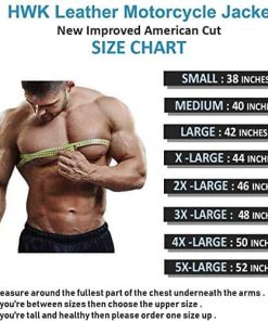 HWK es una marca recién establecida por motociclistas para motociclistas. Vivimos en un país con muchos extremos climáticos donde puedes experimentar las cuatro estaciones. Aquí es donde creció el equipo de HWK, por lo que comprenden las características y funciones necesarias para una chaqueta de cuero para motocicleta todo terreno para hombres que sea cómoda y duradera. Exterior: Chaqueta de cuero para hombre 100% genuino de búfalo. Cremalleras moto de 100% originales de YKK. Membrana transpirable de micro-malla chaqueta de cuero. Forro térmico fijo aislado para hombres chaqueta de motociclista. Chaqueta blindada CE hombros, codos con protector de espalda de espuma de alta densidad. Chaqueta de motocicleta con doble costura de seguridad. Acolchado de espuma en la parte delantera y trasera de las chaquetas de motociclistas para hombres. Paneles de estiramiento extra en la parte trasera para facilitar la conducción de la chaqueta de motocicleta. Bolsillo exterior adicional. Botones de acero inoxidable sin óxido chaquetas de cuero para hombres. Ajustadores de brazo y cintura para un ajuste a medida de las chaquetas de motocicleta para hombre. 4 bolsillos externos más bolsillo interno para móvil y bolsillo de almacenamiento chaqueta de moto de tierra para hombres. Reflectante para visibilidad nocturna chaqueta crucero. Chaqueta dual deportiva sin arrugas para hombres. Puños ajustables con cremallera. Guía de tallas de medición del pecho (pulgadas): Pequeño 38» Mediano 40′ Grande 42» X-Grande 44» XX-Grande 46» XXXL 48» XXXXL 50» XXXXXL 52» Si estás entre tallas, elige la talla superior para un fácil ajuste de la chaqueta de motocicleta para hombre. CALIDAD MÁXIMA al PRECIO MÍNIMO: Un chollo, apostamos a que no encontrarás una chaqueta de cuero para motocicleta para hombres a este precio en el mercado de accesorios de motocicletas / ropa protectora / equipamiento de motocicletas. Consulta nuestras otras listas en nuestra tienda para chaquetas de motocicleta de tela, pantalones de motocicleta y guantes de motocicleta. HWK