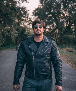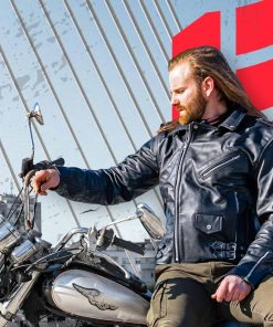 Chaqueta de cuero para motocicleta HWK Brando para hombre,