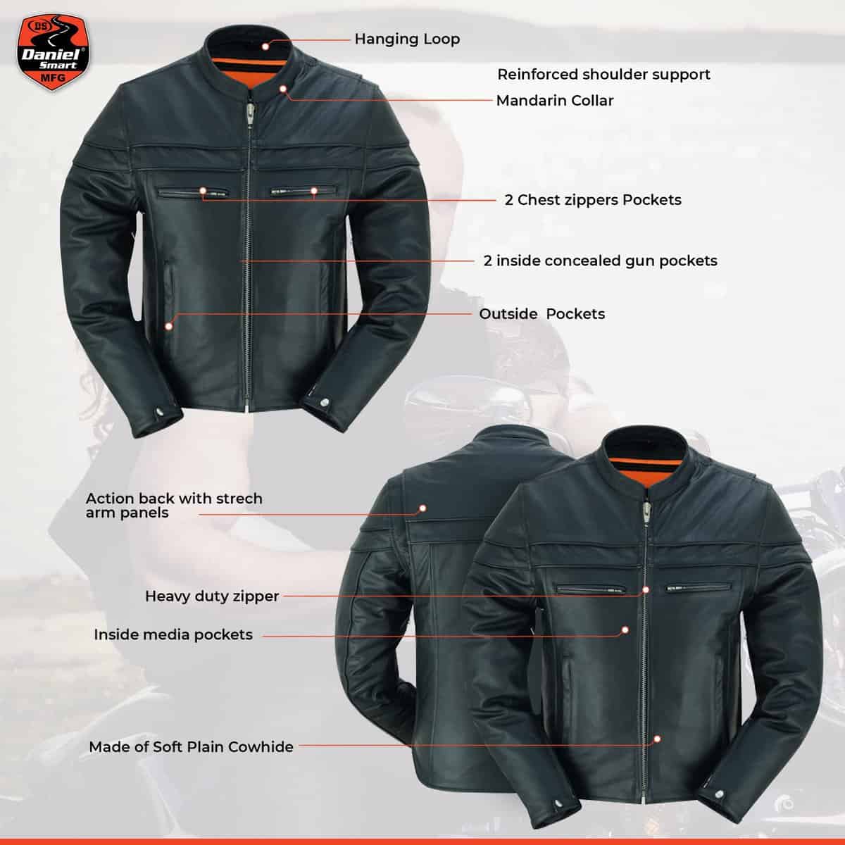 Chaqueta de Cuero para Motocicleta para Hombre Daniel Smart
