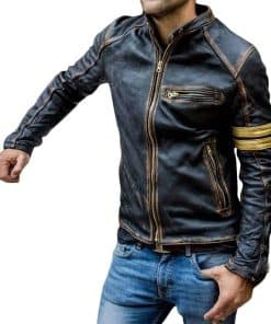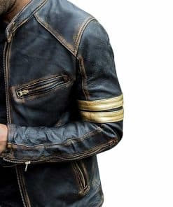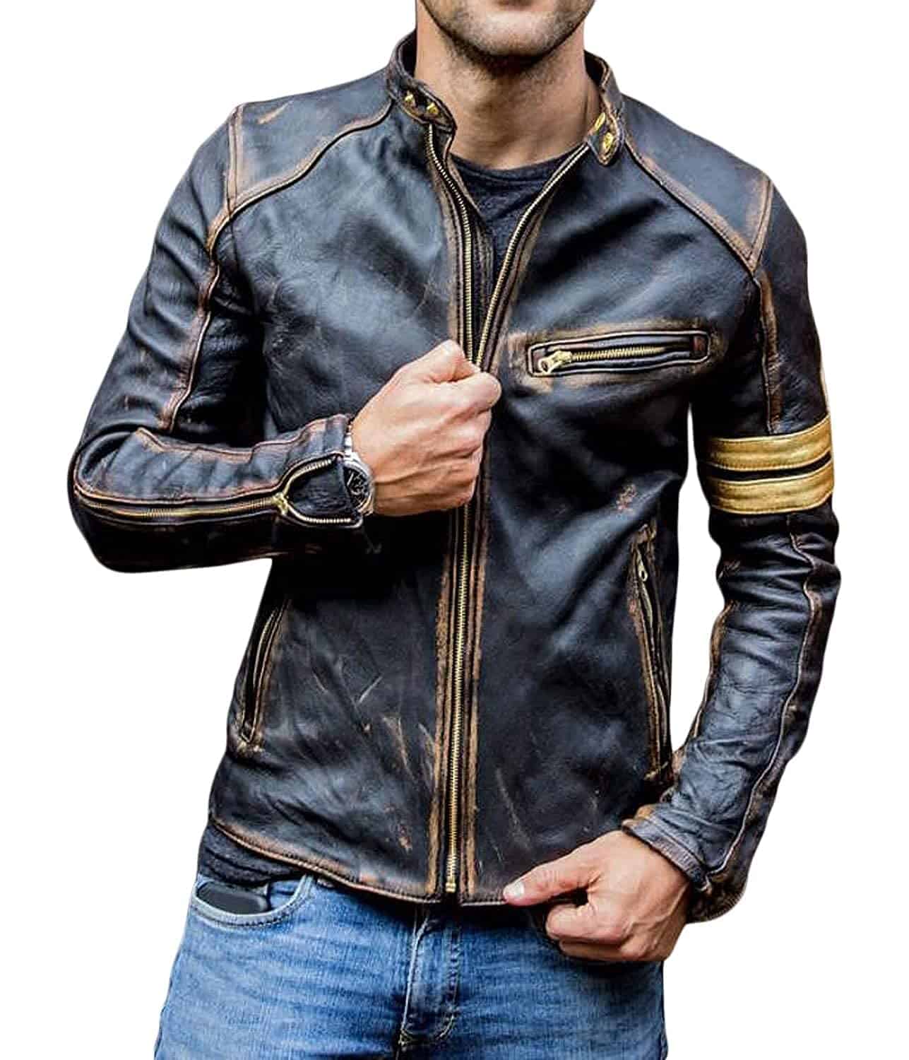 Chaqueta de Cuero para Motocicleta Vintage Retro Biker Cafe