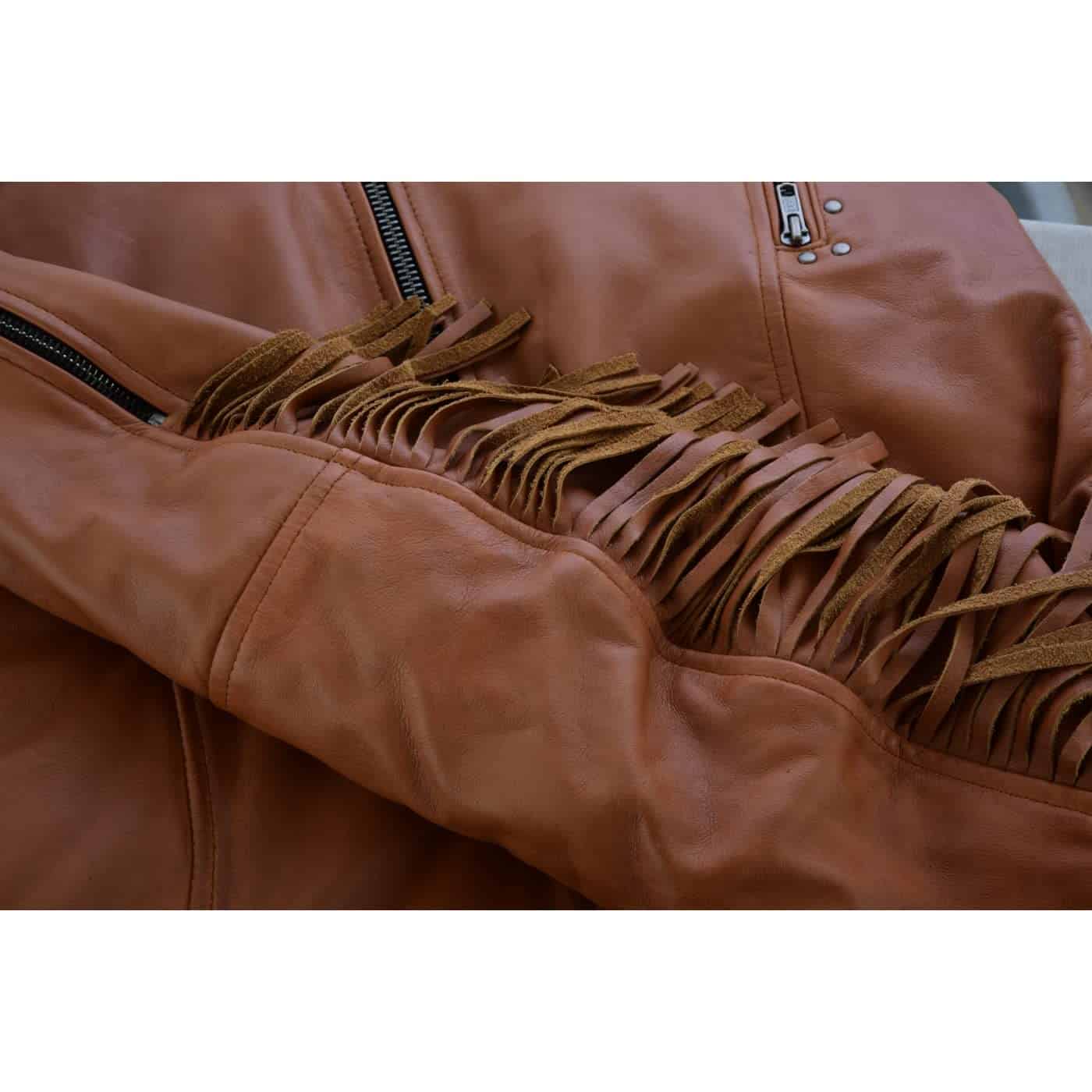 Chaqueta de Cuero Premium «Roxy» con Flecos para Mujer con