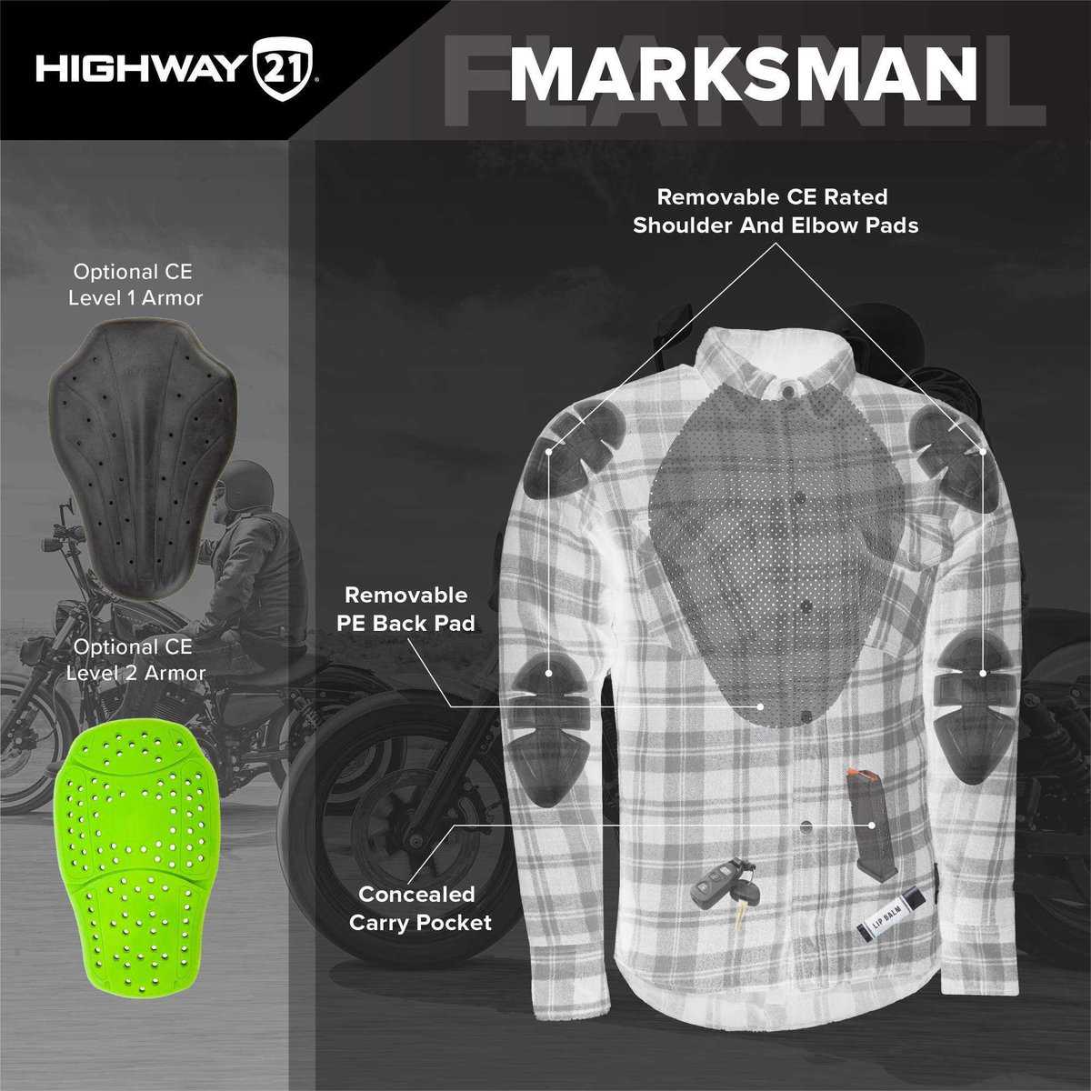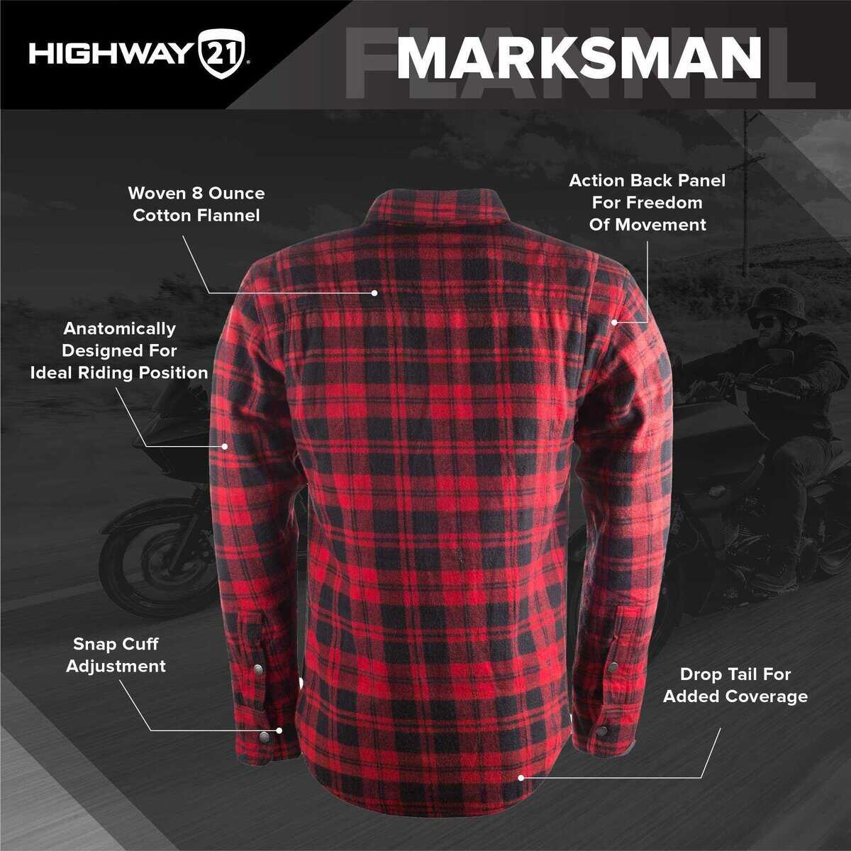 Cuando recorres la carretera abierta, no siempre tienes una dirección o destino; eso es solo parte de la vida de un motociclista. Con las calles cambiando constantemente, debes estar preparado. Busca protección con la chaqueta de franela Marksman. Una chaqueta tan resistente como tu abuelo, pero con un diseño innovador y clásico que no te defraudará. Mantente protegido, con estilo y alcanza la marca.